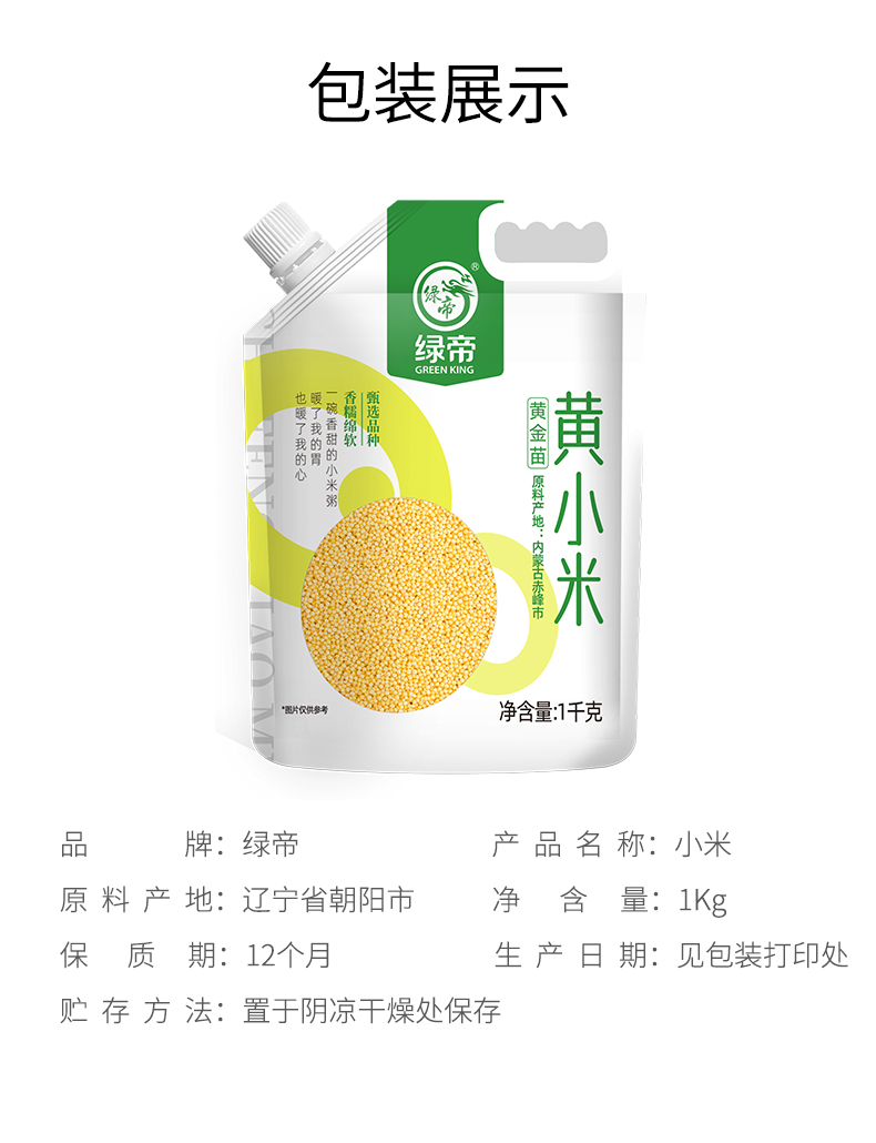 商品名称:GREEN KING/绿帝黄小米-吸嘴装1kg