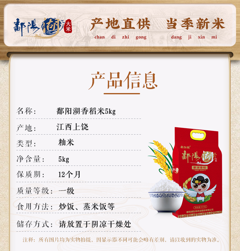 商品名称:鄱阳湖鄱湖香稻大米5kg
