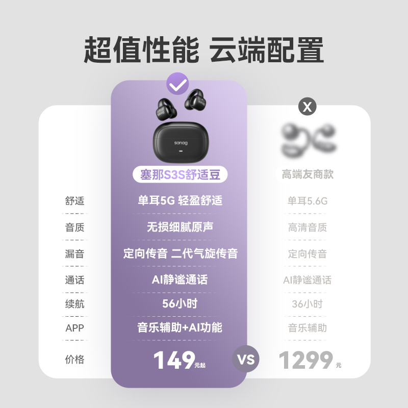 商品名称:SANAG/塞那舒适豆骨传导蓝牙耳机S3S