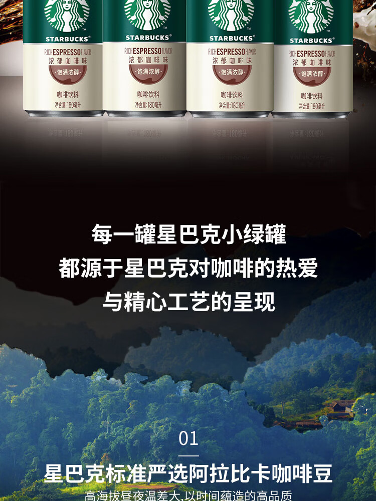 STARBUCKS/星巴克星倍醇浓郁咖啡味灌装咖啡饮料整箱180ml*24罐