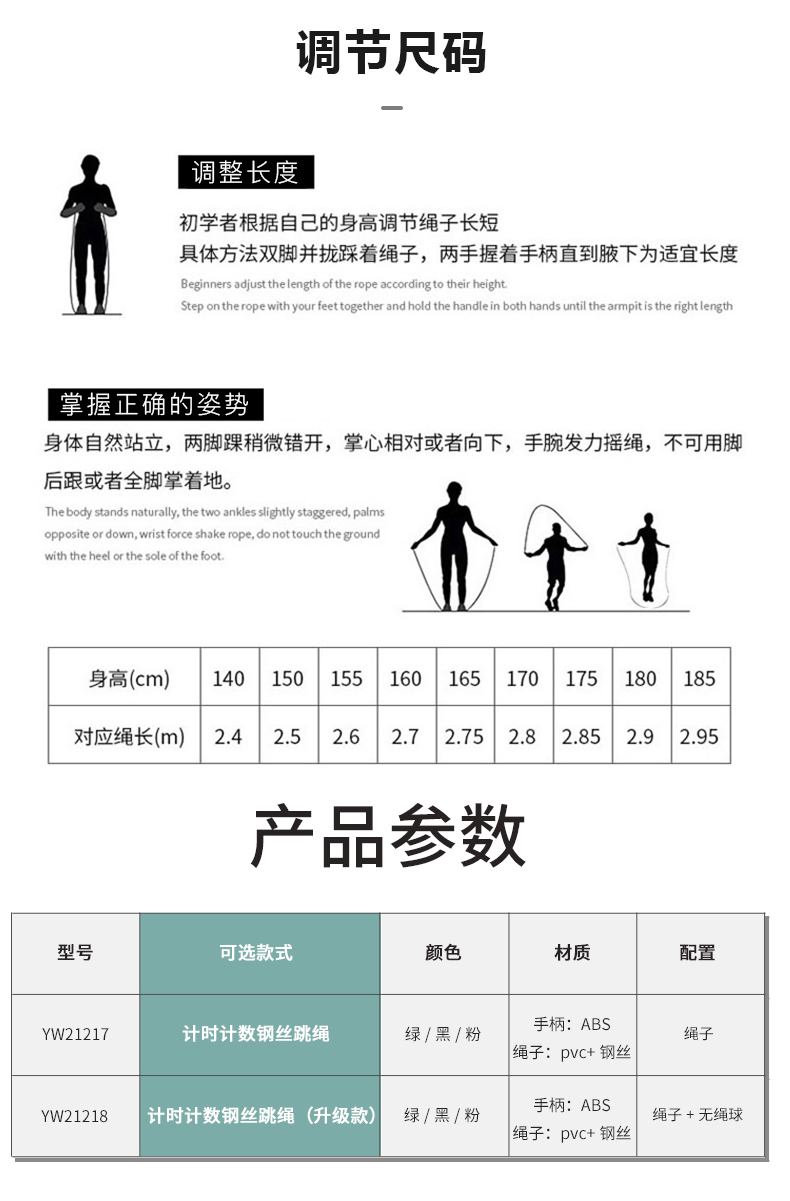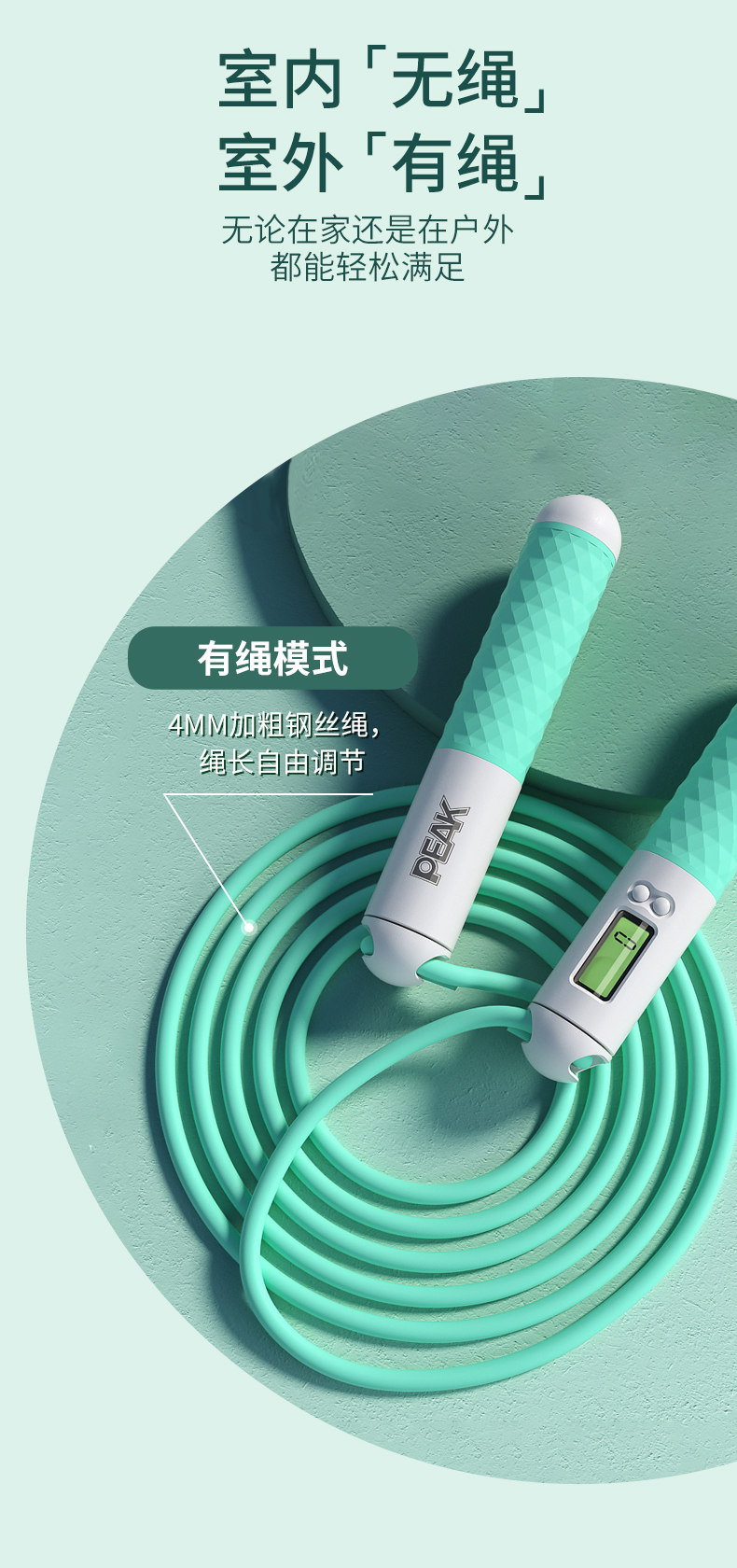 商品名称:匹克多功能计数两用跳绳-薄荷绿YW21279