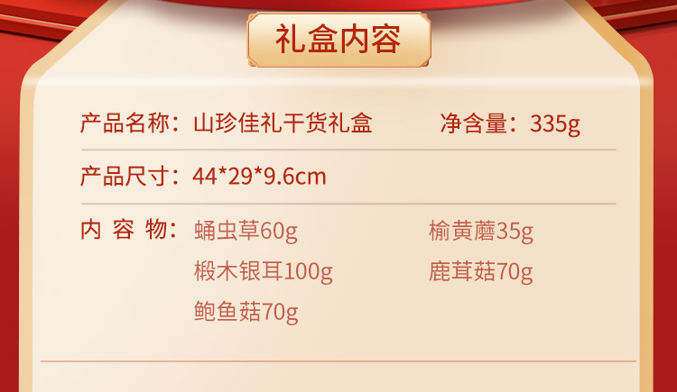 商品名称:禾煜山珍佳礼干货礼盒335g