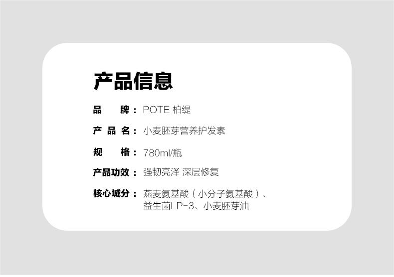 商品名称:POTE/柏缇小麦胚芽营养护发素780ml