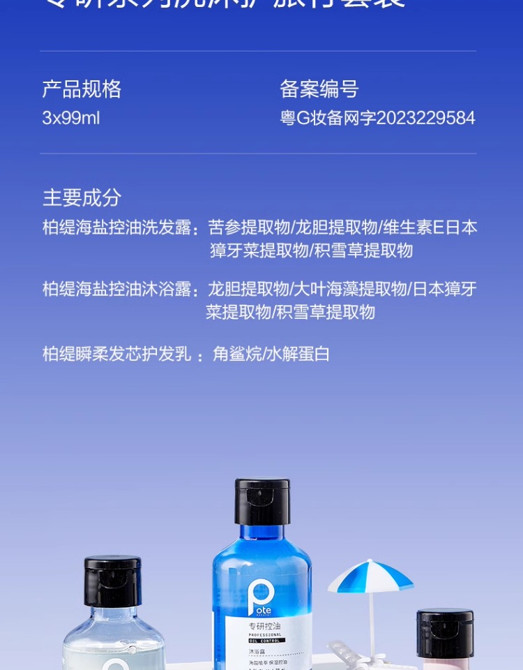 商品名称:POTE/柏缇专研系列洗沐护旅行套装99ml*3瓶