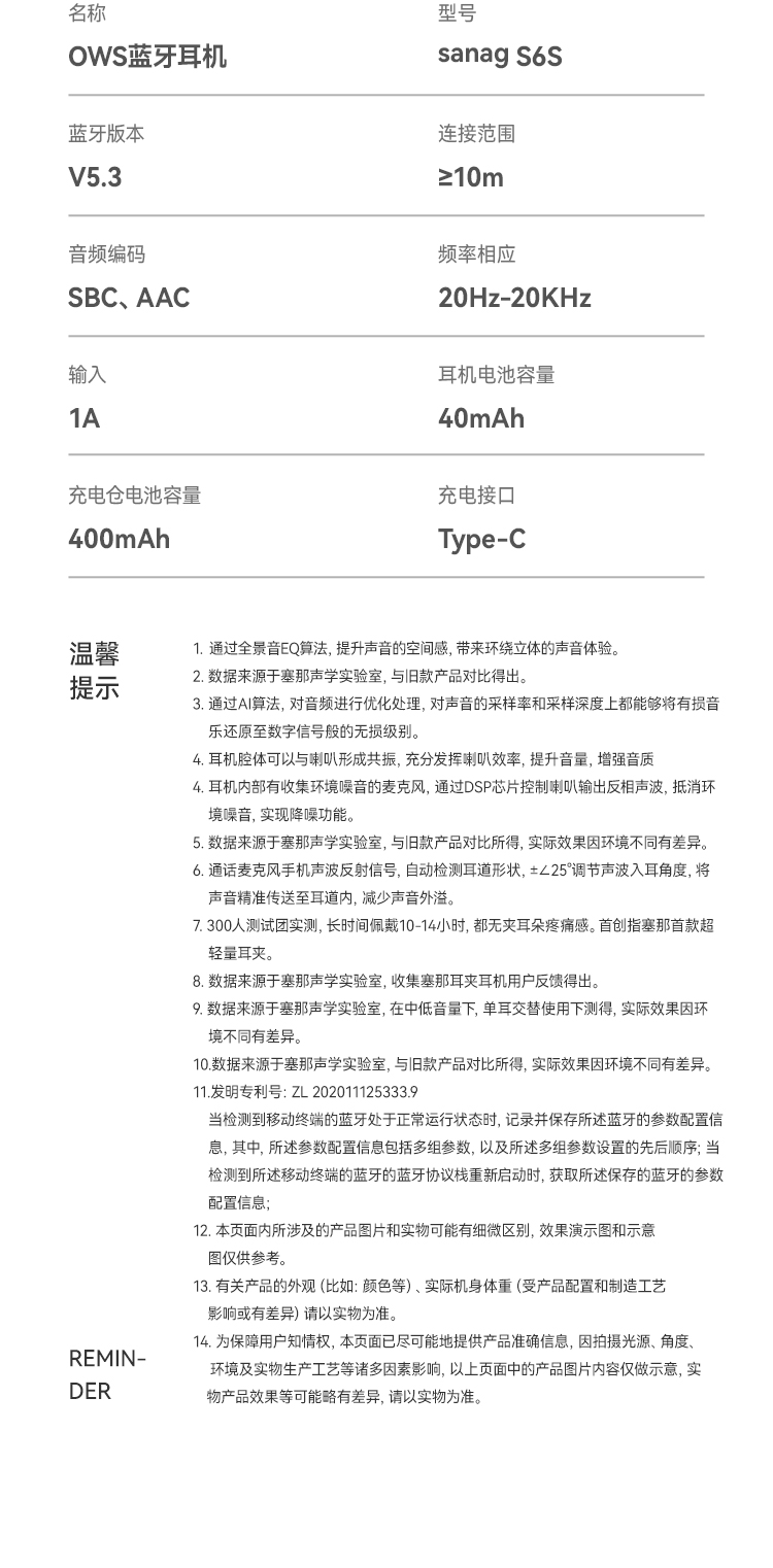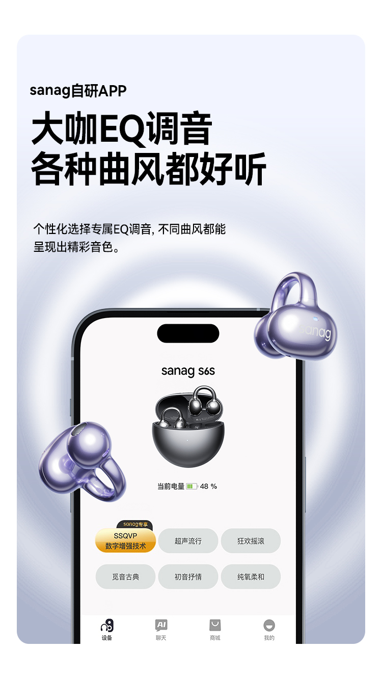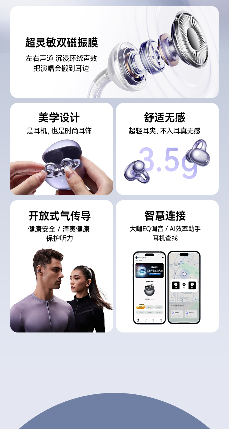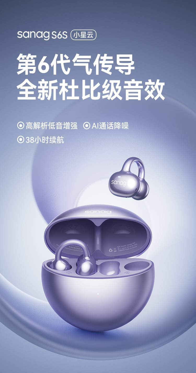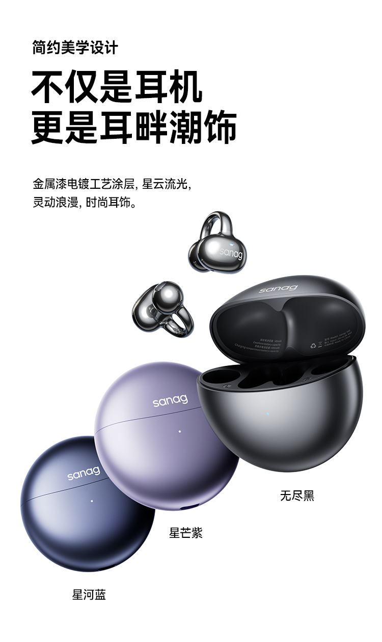 商品名称:【京东/顺丰配送】SANAG/塞那小星云第6代耳夹气传导蓝牙耳机S6S