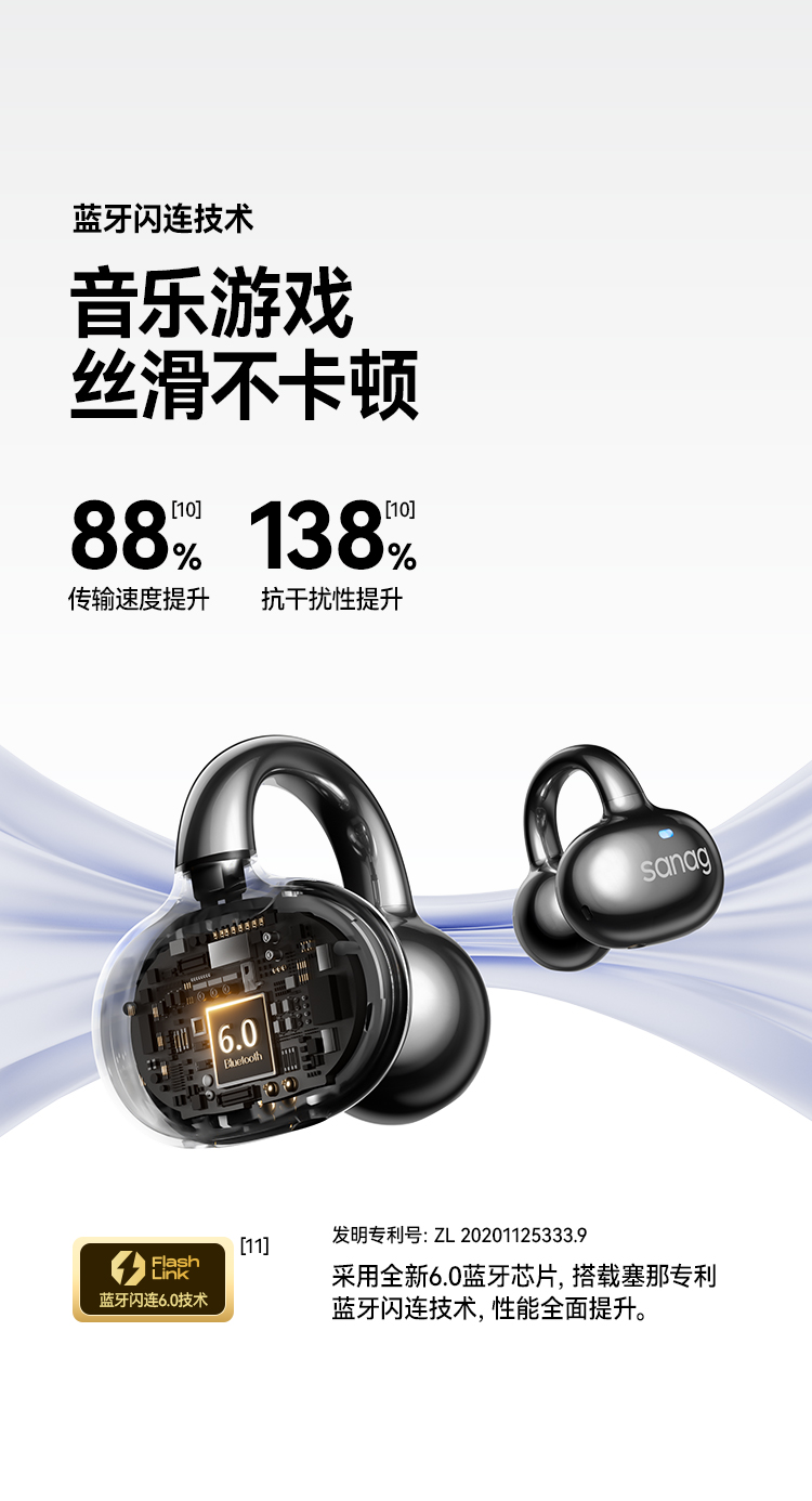 【京东/顺丰配送】SANAG/塞那小星云第6代耳夹气传导蓝牙耳机S6S