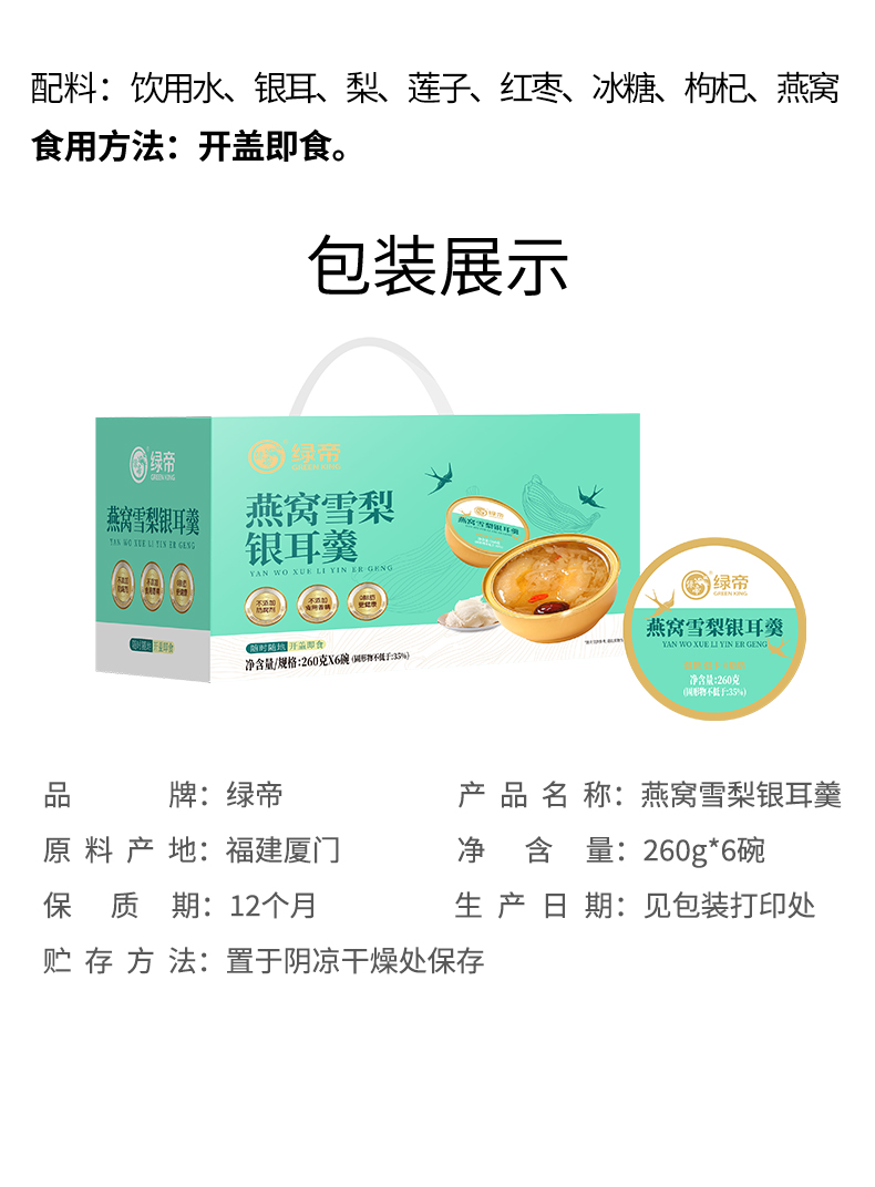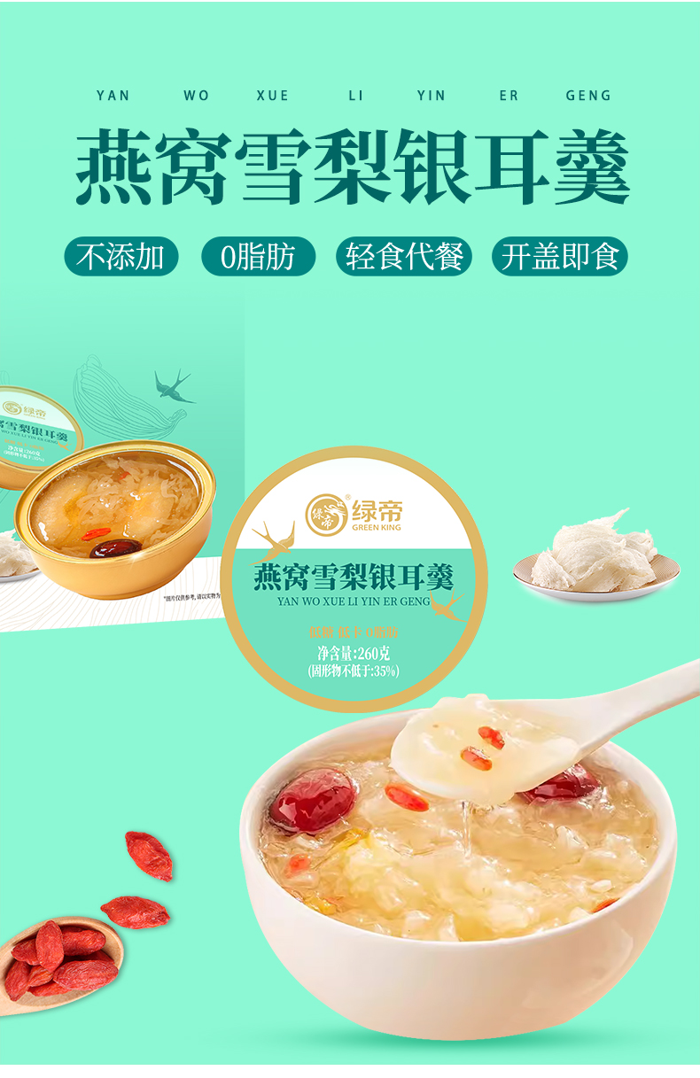 商品名称:GREEN KING/绿帝燕窝雪梨银耳羹礼盒1560g