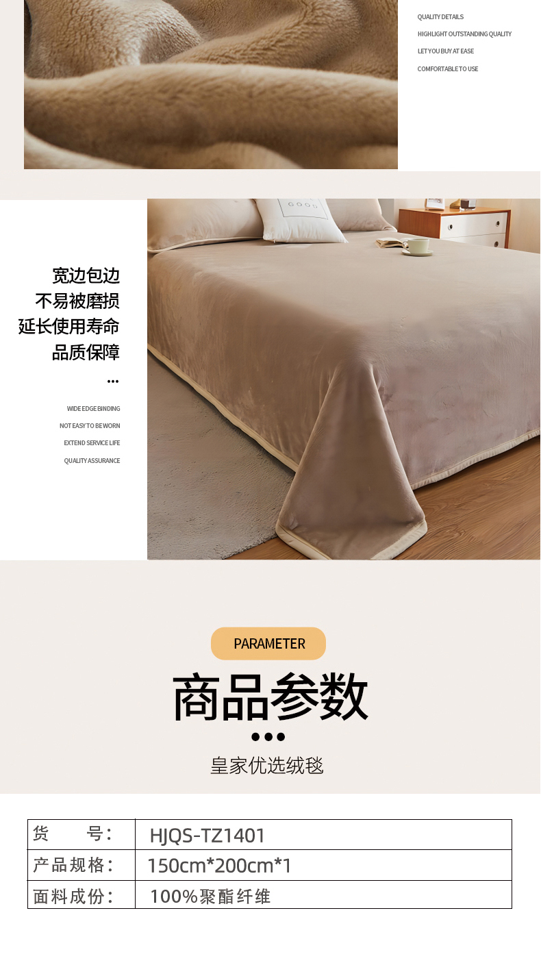 商品名称:ROYAL/皇家寝室皇家优选绒毯150*200cm 650g