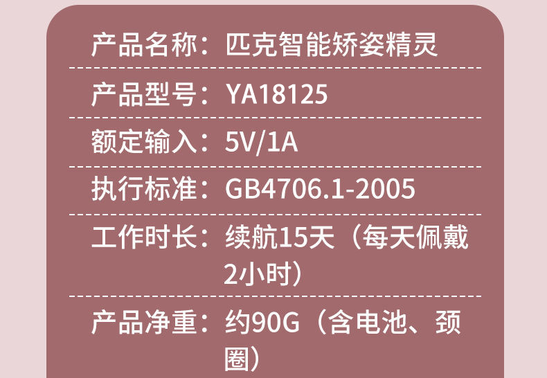 商品名称:匹克智能矫姿精灵YA18125