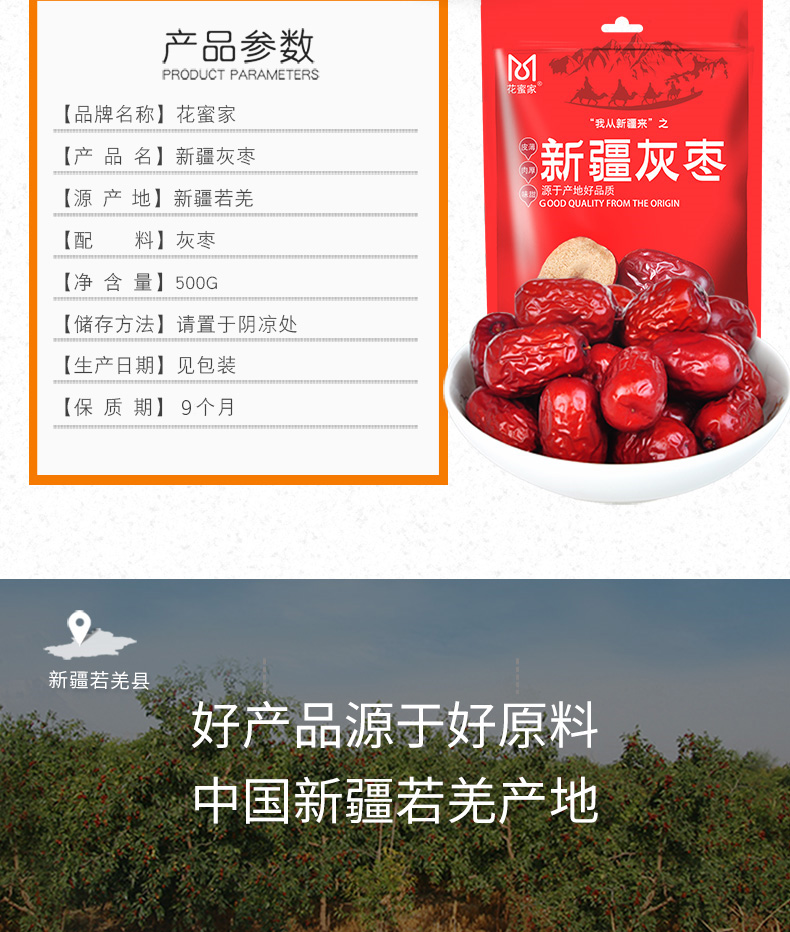商品名称:花蜜家新疆灰枣500g*2袋