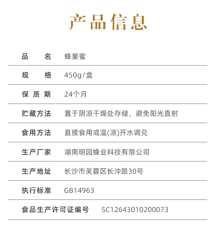 商品名称:明园蜂巢蜜450g