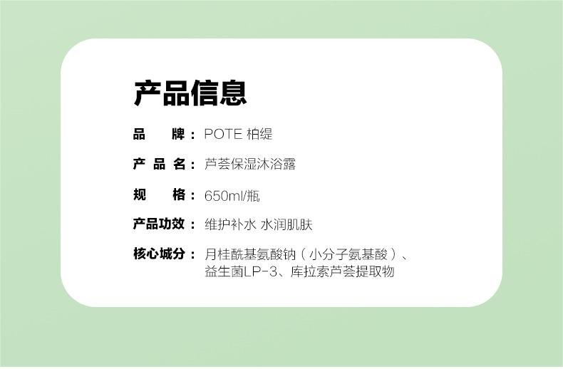 商品名称:POTE/柏缇芦荟水嫩沐浴露650ml