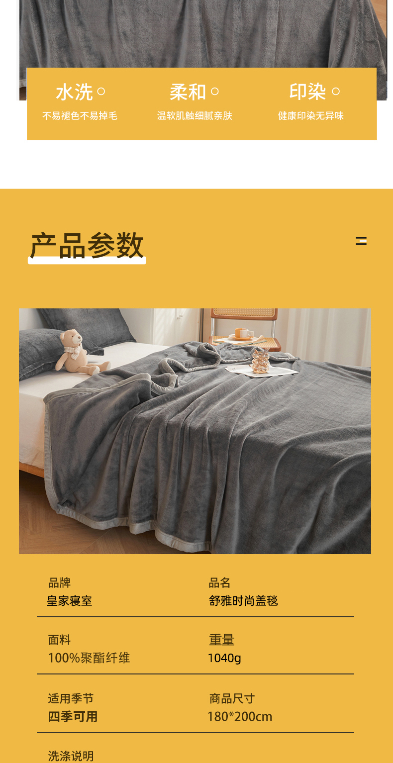 商品名称:ROYAL/皇家寝室舒雅时尚盖毯180*200cm 1040g