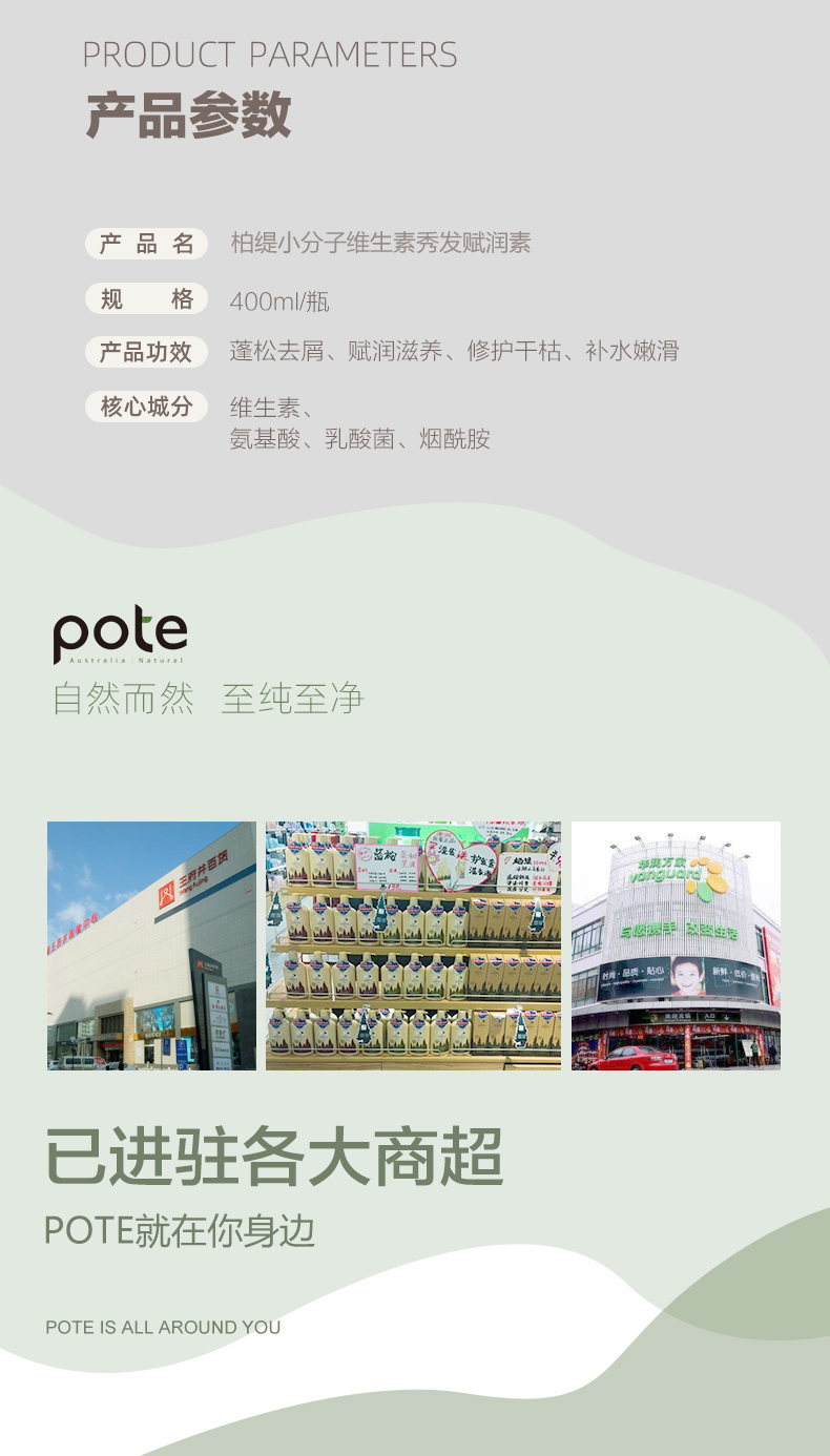 商品名称:POTE/柏缇小分子维生素秀发赋润素护发素400ml