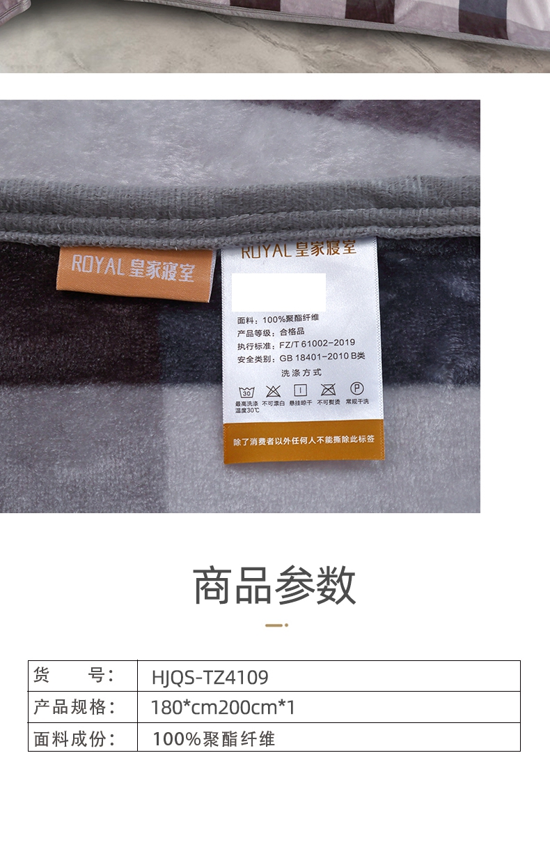 商品名称:ROYAL/皇家寝室绒生活艺术毯180*200cm 1100g