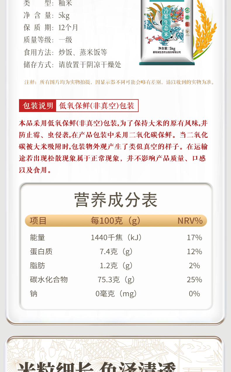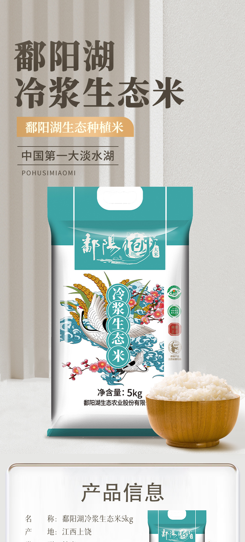 商品名称:鄱阳湖冷浆生态大米5kg