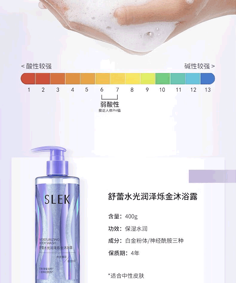 商品名称:SLEK/舒蕾水光润泽烁金沐浴露400g