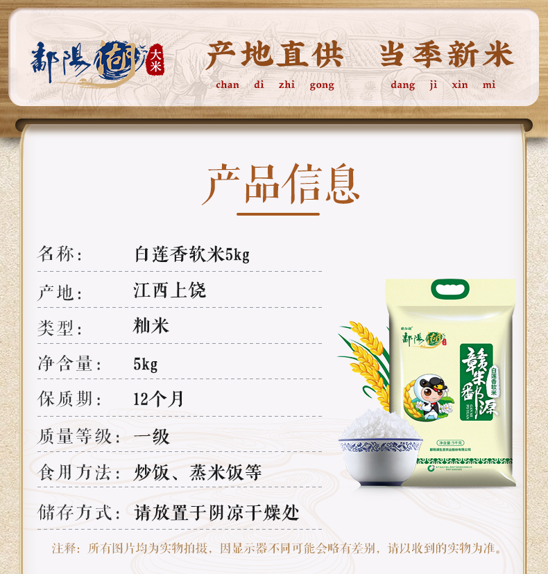 商品名称:鄱阳湖白莲香软大米5kg