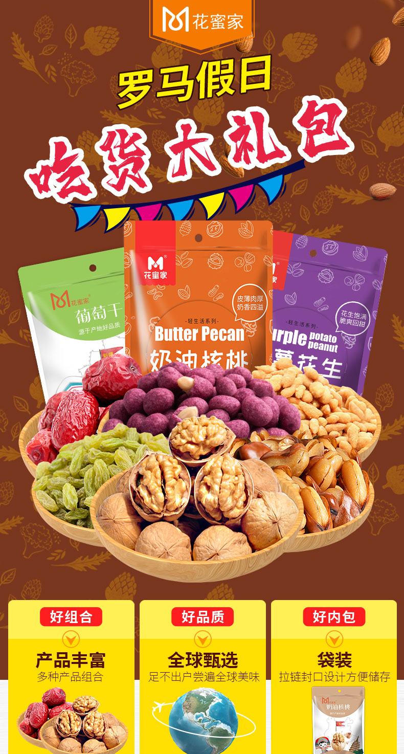 商品名称:花蜜家罗马假日吃货零食大礼包6袋装648g