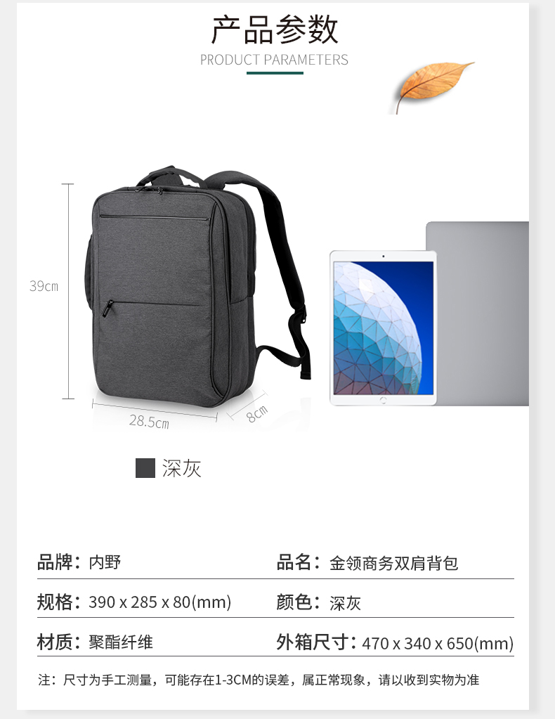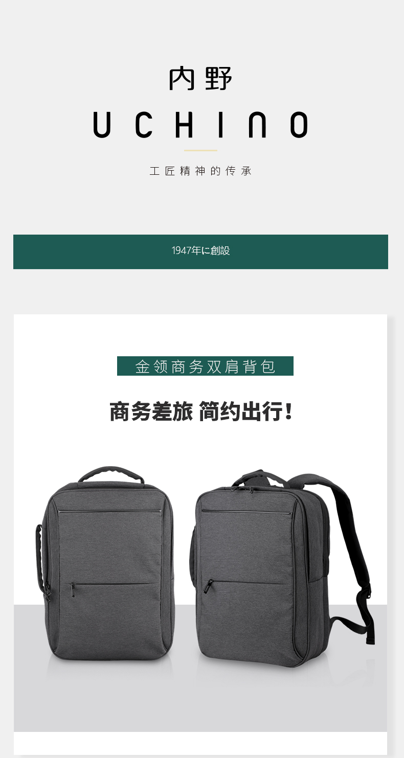 商品名称:UCHINO/内野金领商务双肩背包-深灰UC-B005
