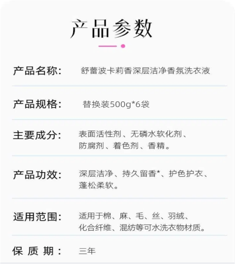 商品名称:SLEK/舒蕾波卡莉香深层洁净香氛洗衣液500g*6袋