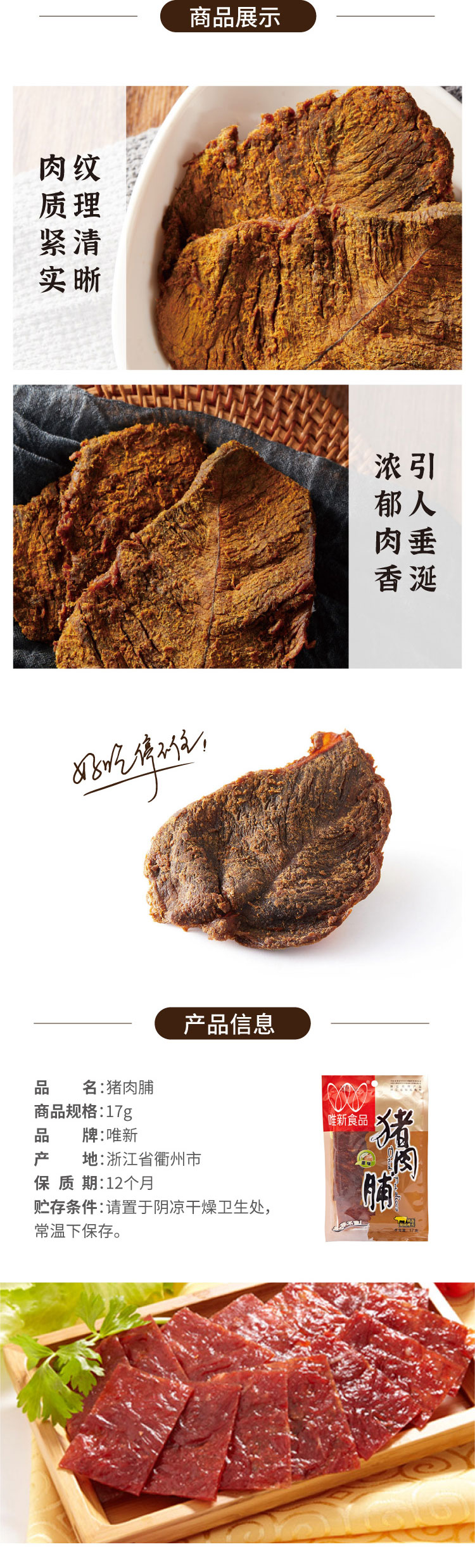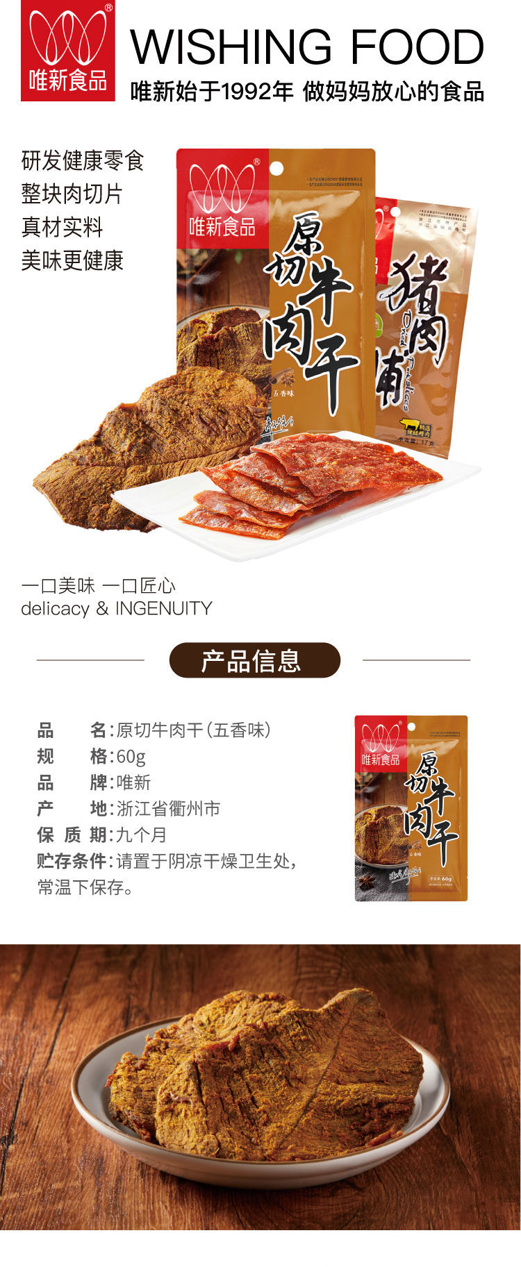 唯新原切五香味牛肉干60g*1袋+原味猪肉脯17g*5袋