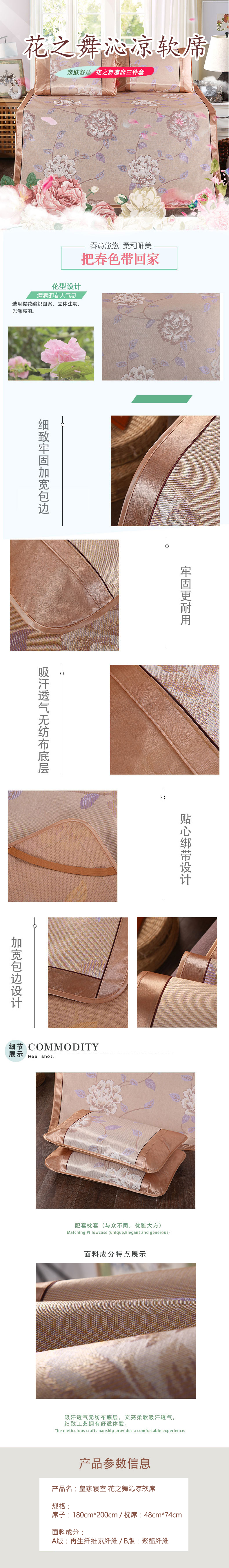 商品名称:ROYAL/皇家寝室花之舞沁凉软席三件套180*200cm