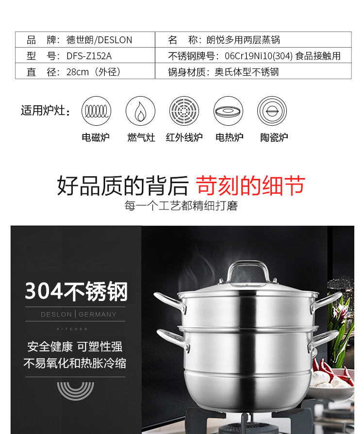 商品名称:DESLON/德世朗28cm朗悦多用两层蒸锅DFS-Z152A