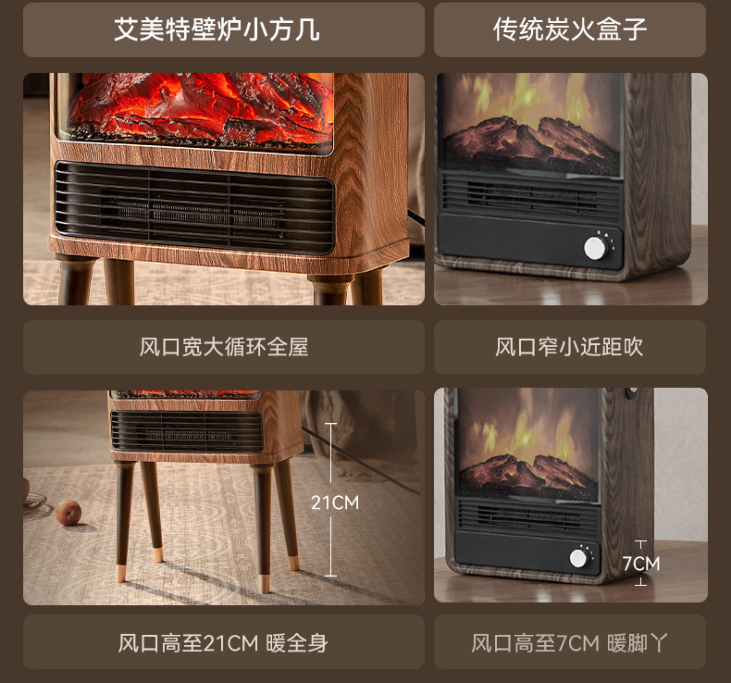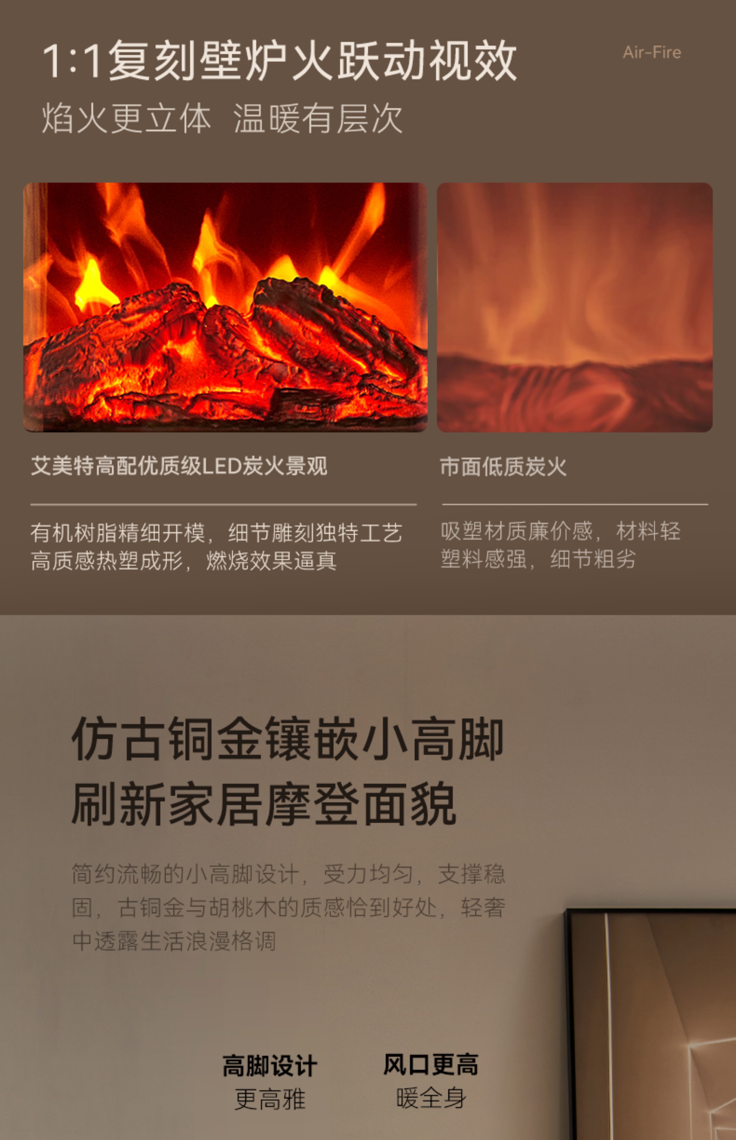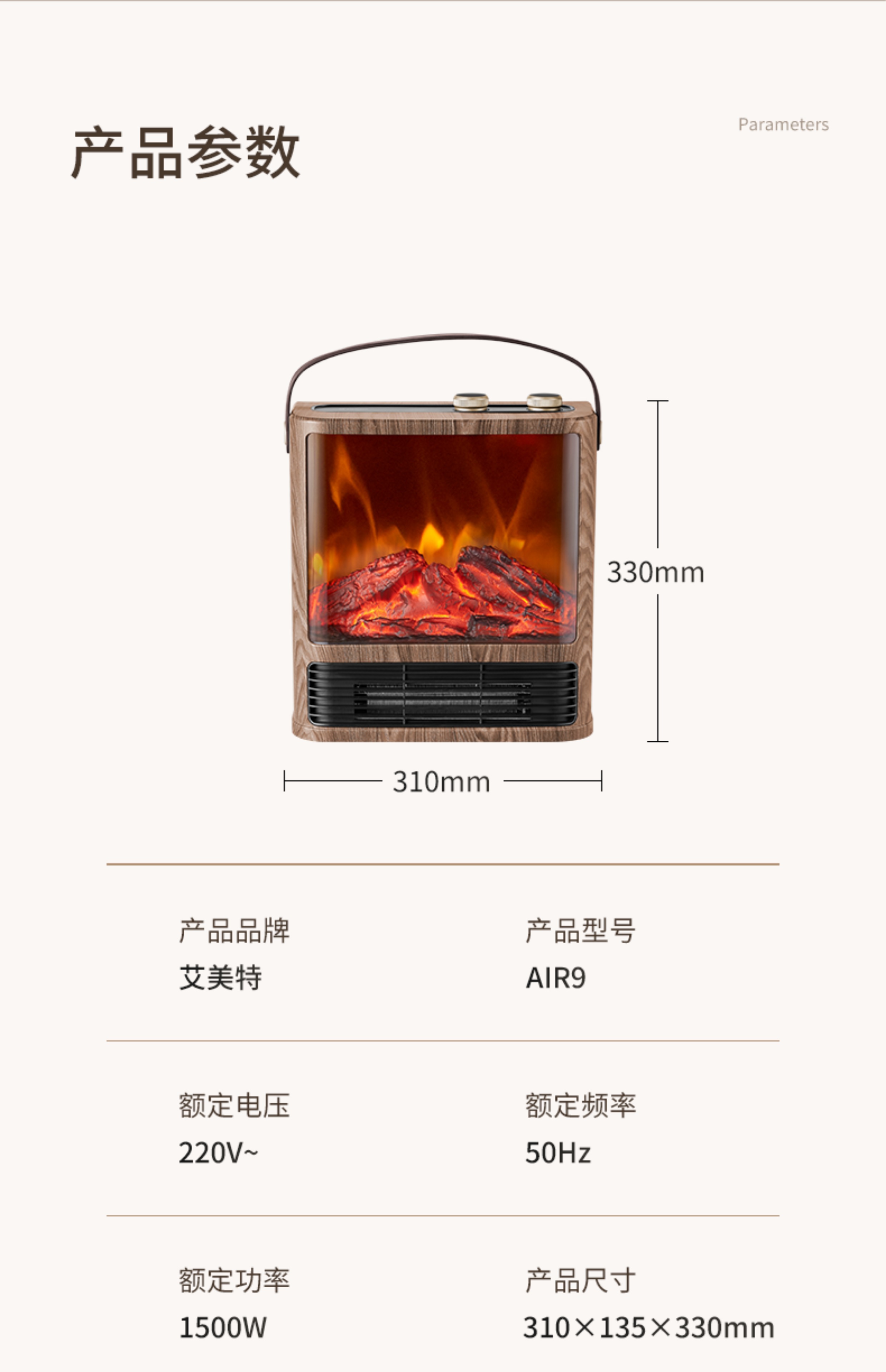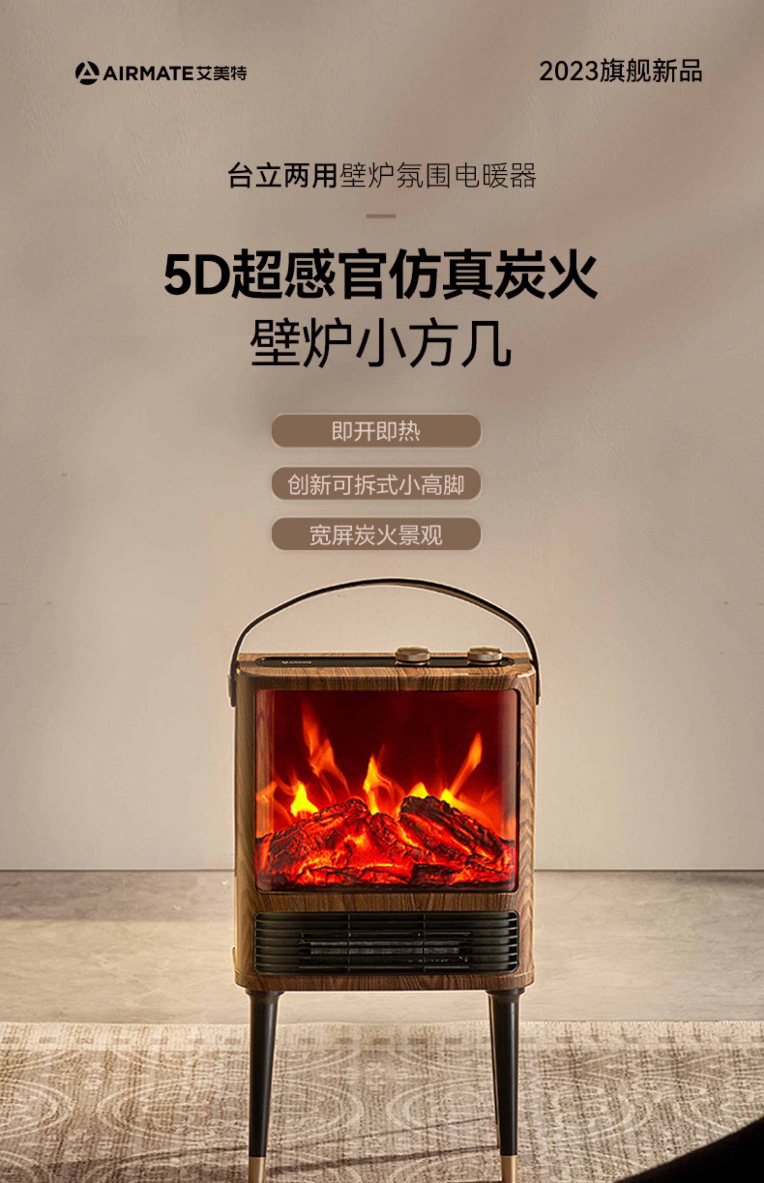 商品名称:Airmate/艾美特5D超感官仿真炭火壁炉小方几暖风机AIR9