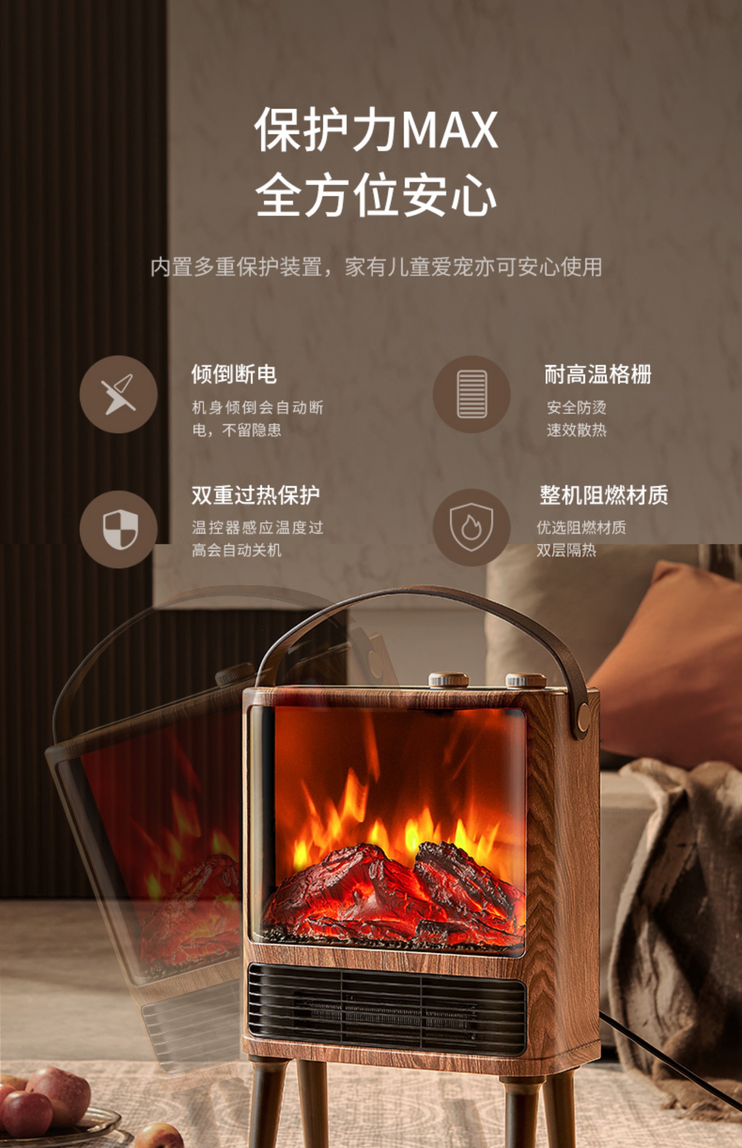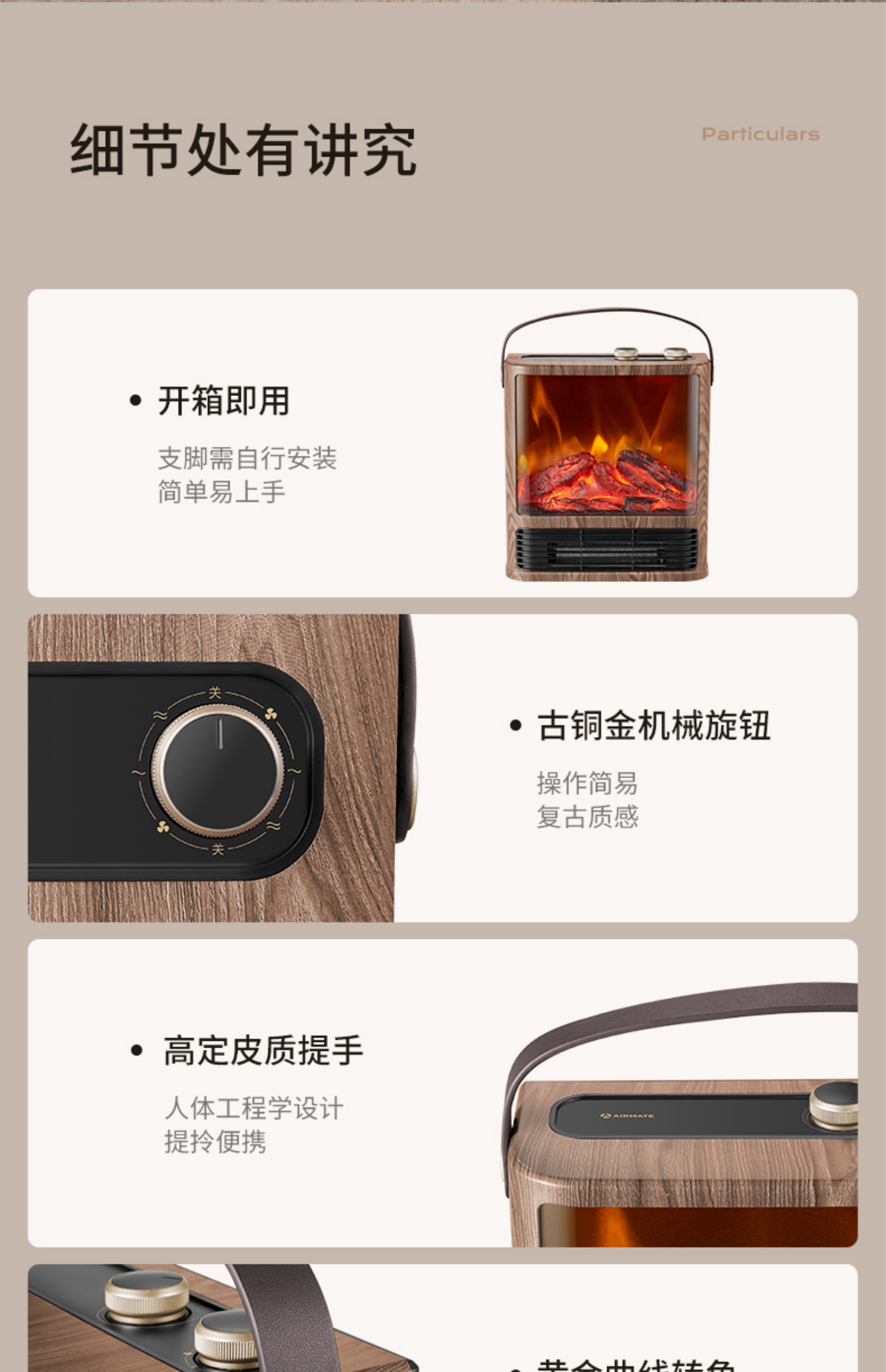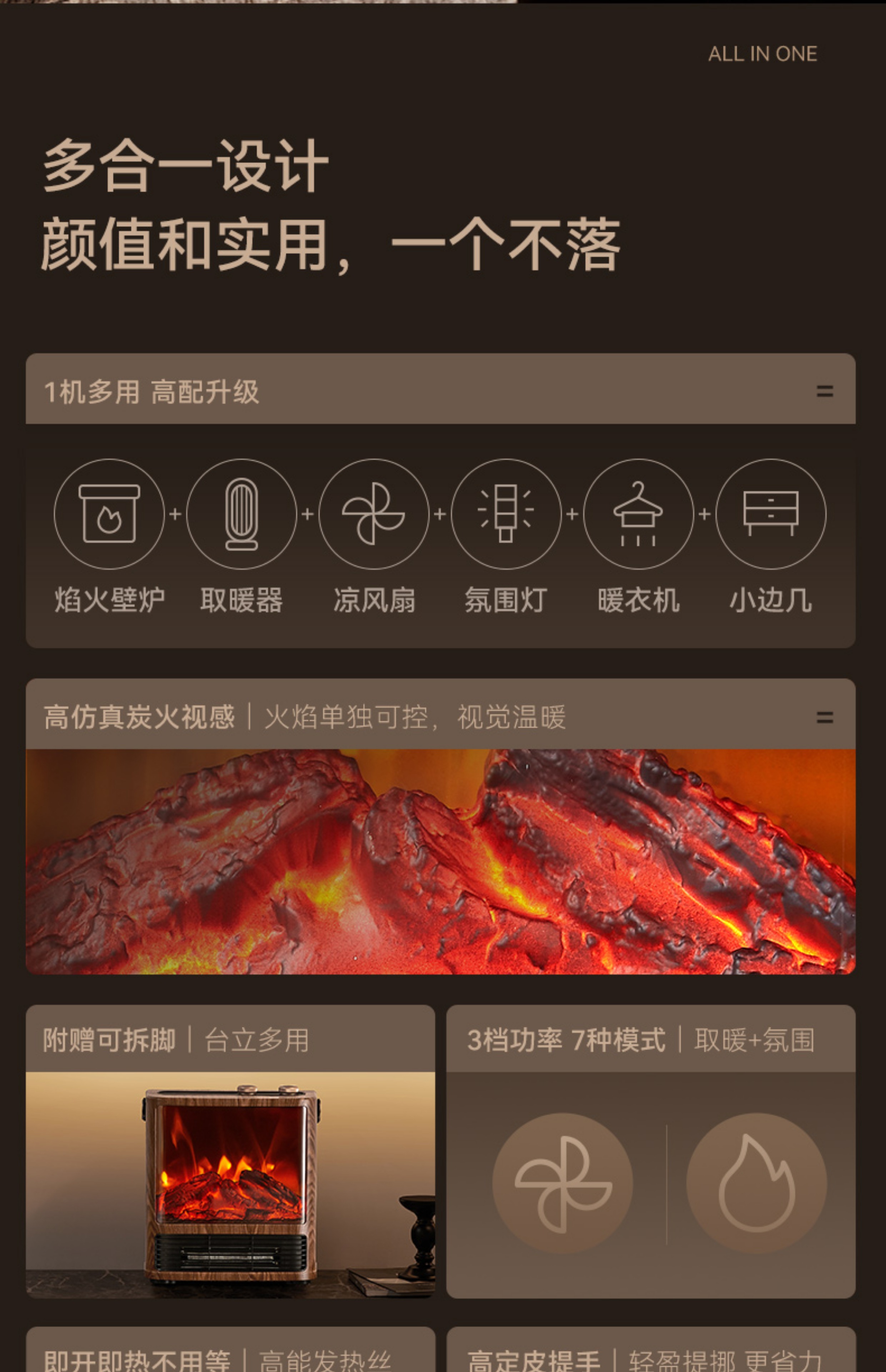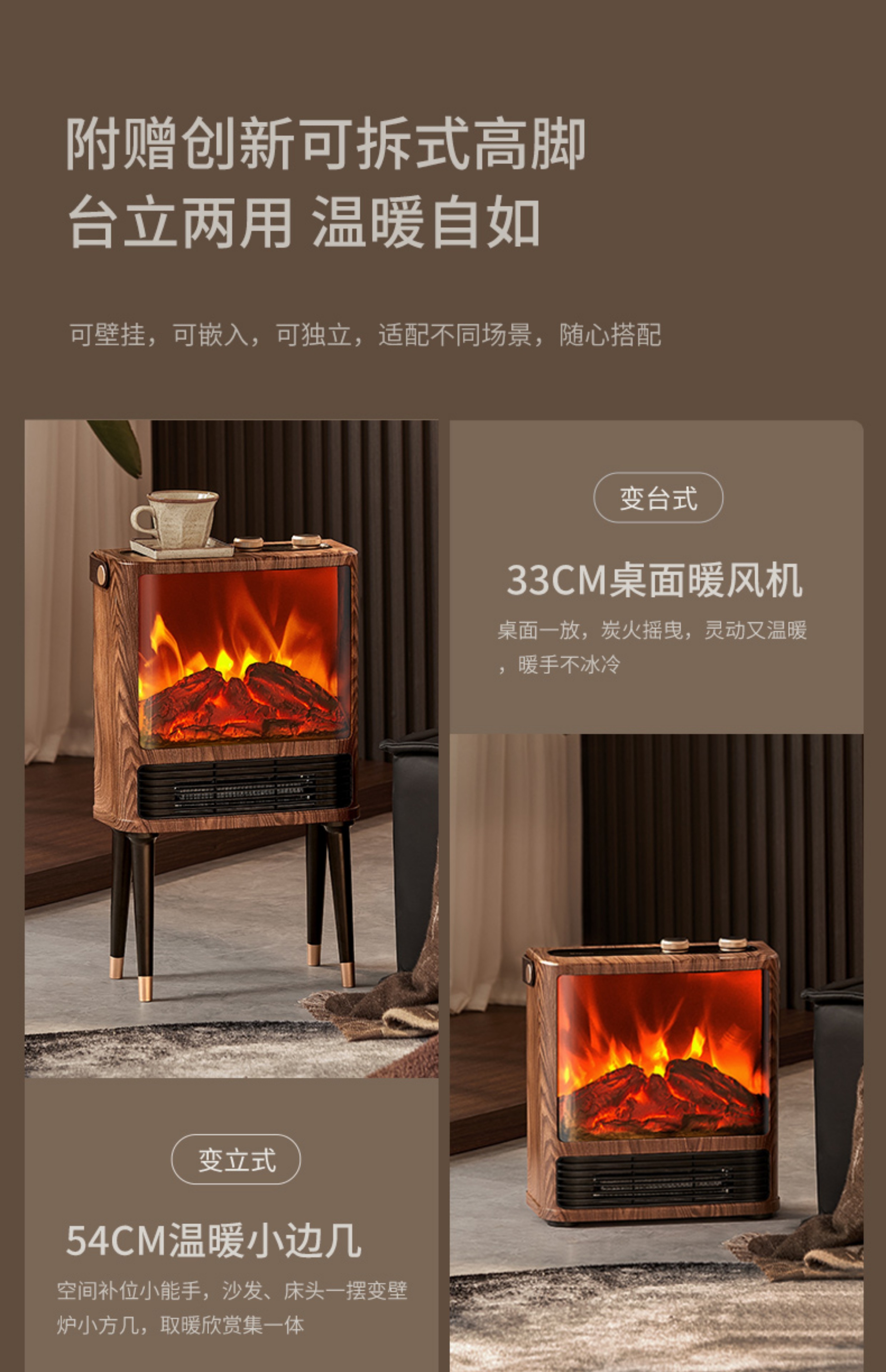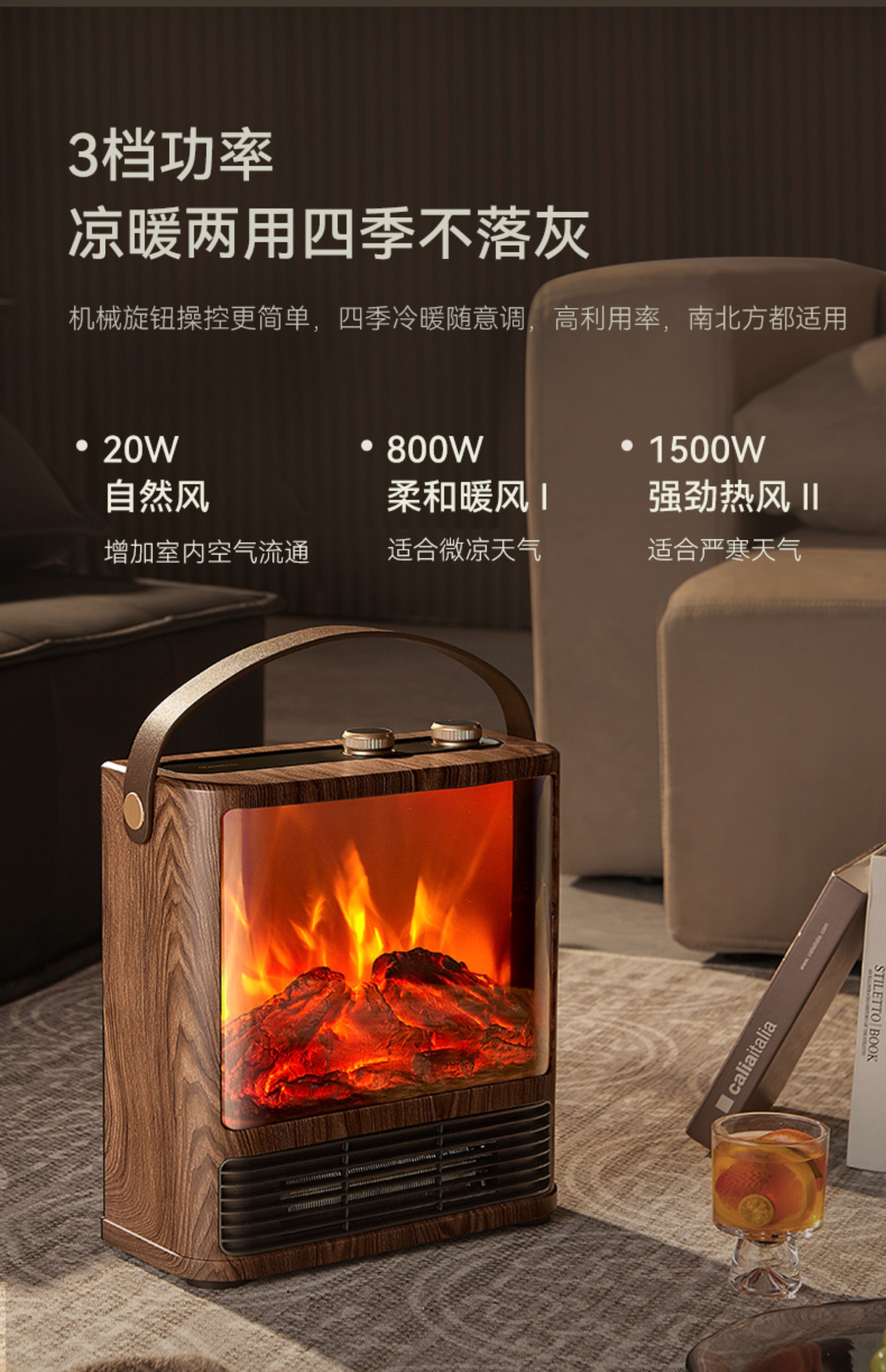 商品名称:Airmate/艾美特5D超感官仿真炭火壁炉小方几暖风机AIR9