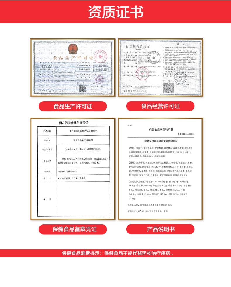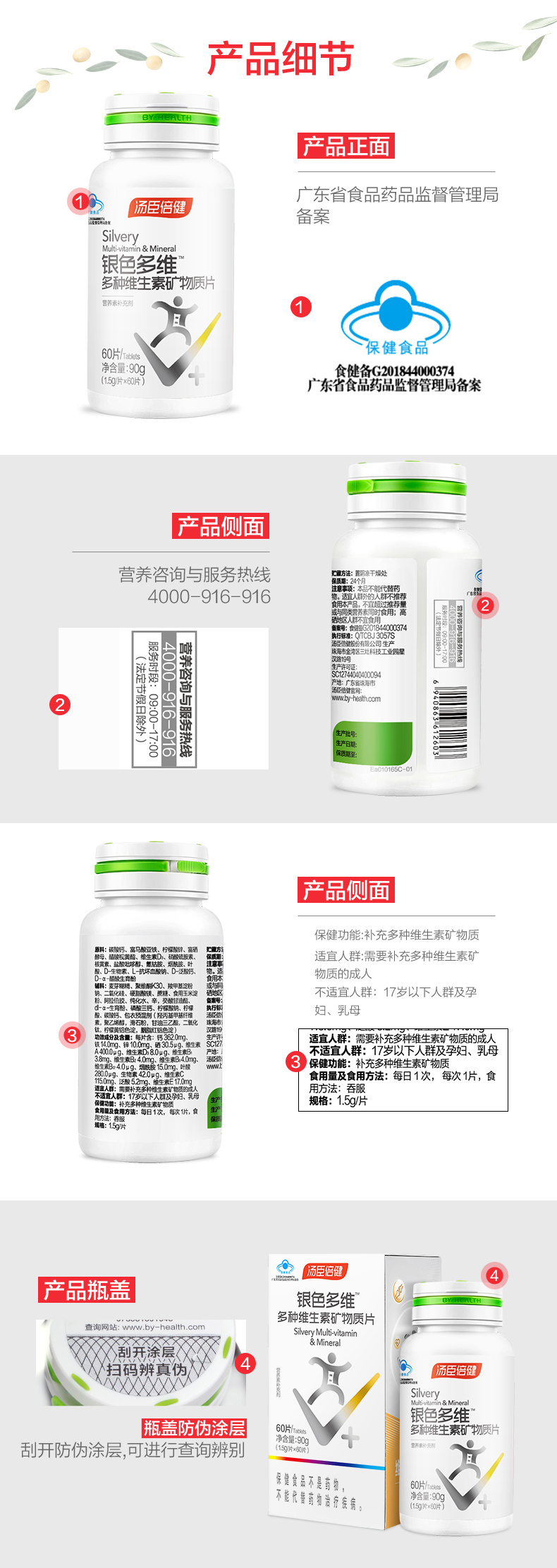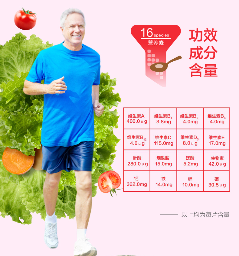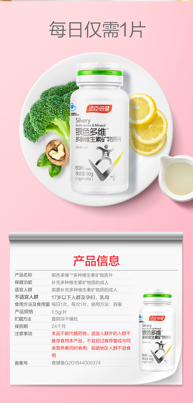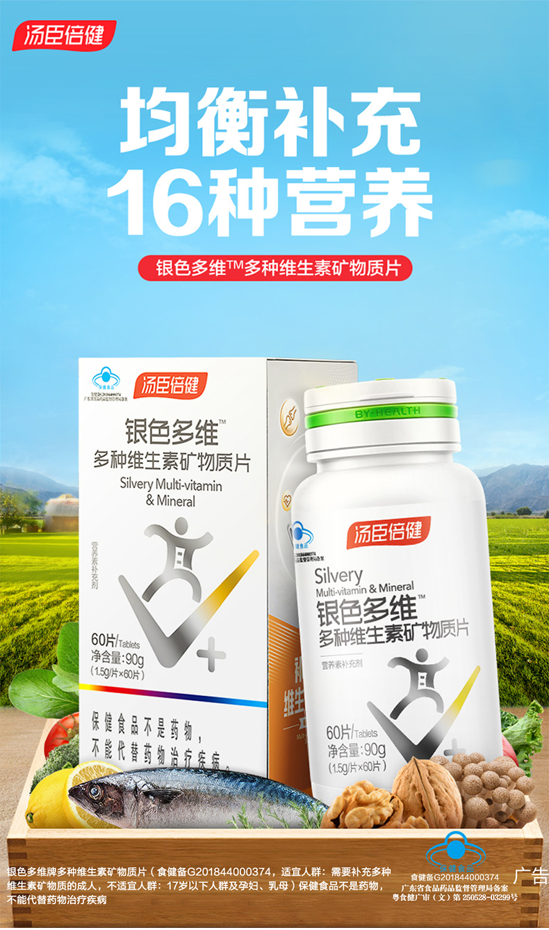 商品名称:汤臣倍健银色多维多种维生素矿物质片60片×2优惠装 中老年含vc维生素e维生素d钙铁锌