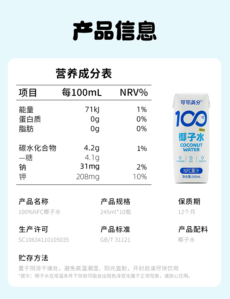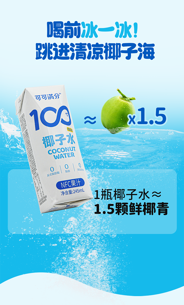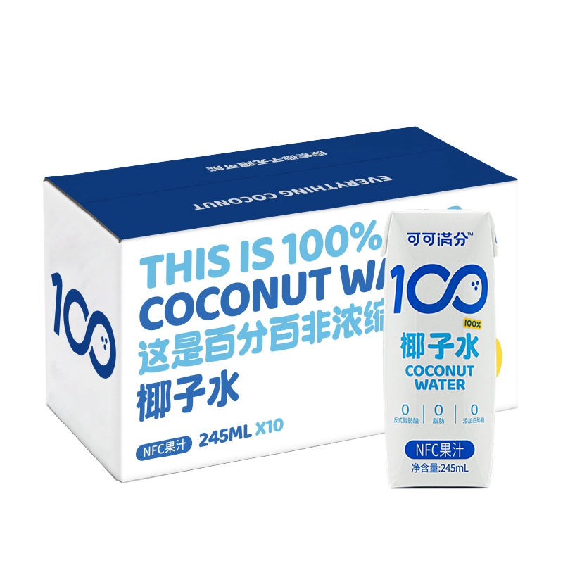 商品名称:可可满分100%NFC椰子水整箱245ml*10瓶