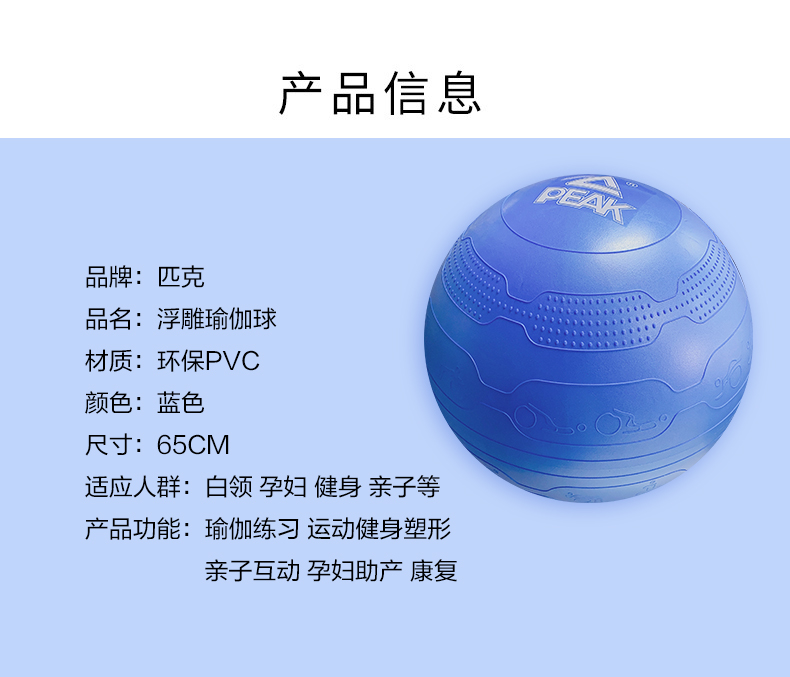 商品名称:匹克浮雕瑜伽球-蓝色YJ31104