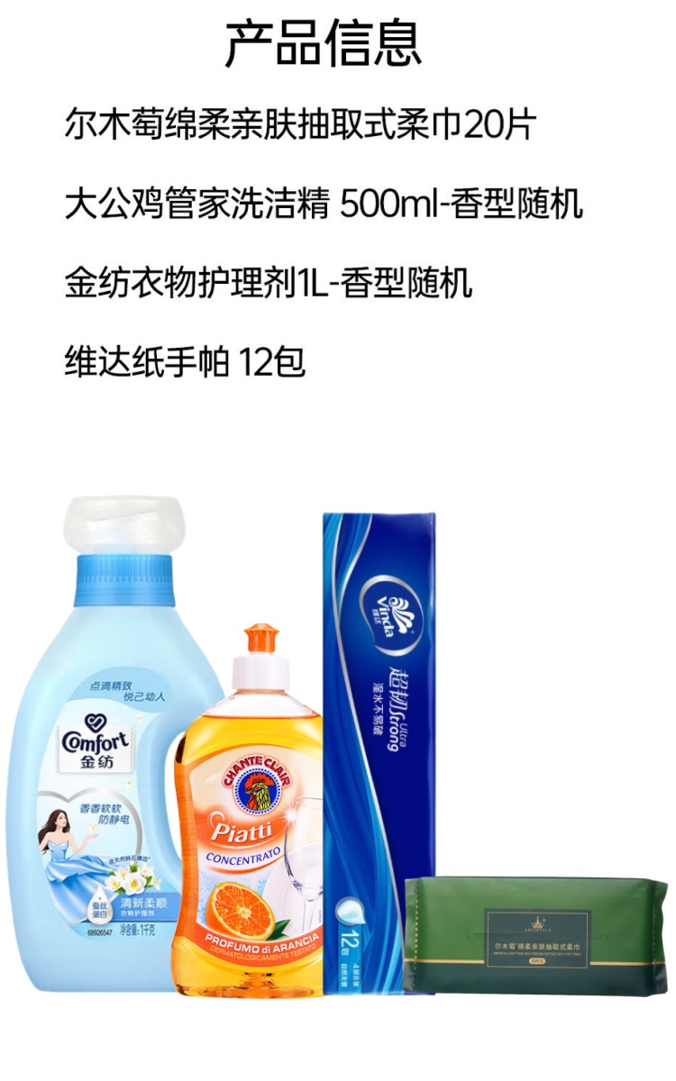 商品名称:大公鸡金纺尔木萄维达家清套装 香型随机不接受指定