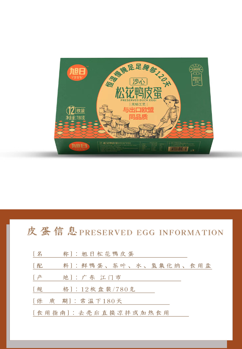 商品名称:旭日1996松花鸭皮蛋礼盒780g