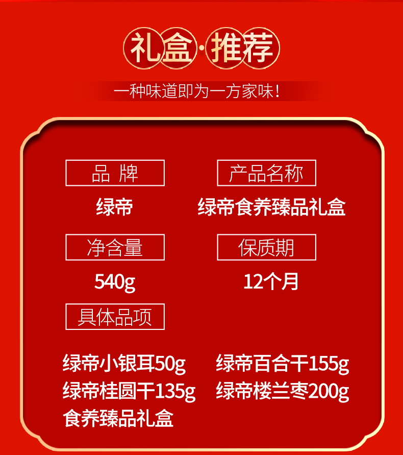 商品名称:GREEN KING/绿帝食养臻品干货礼盒540g