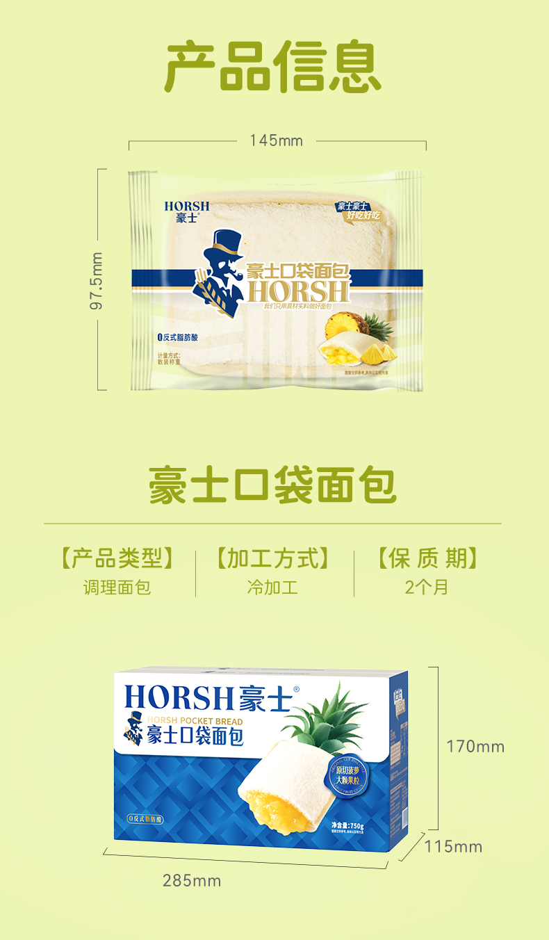 商品名称:豪士菠萝口袋面包750g