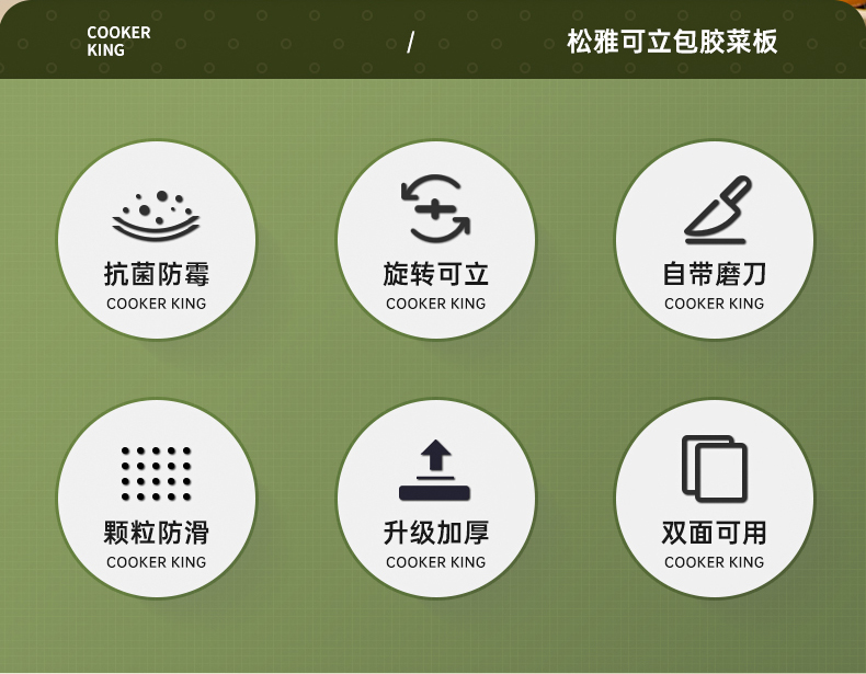 商品名称:COOKERKING/炊大皇松雅可立包胶菜板CB03SKL