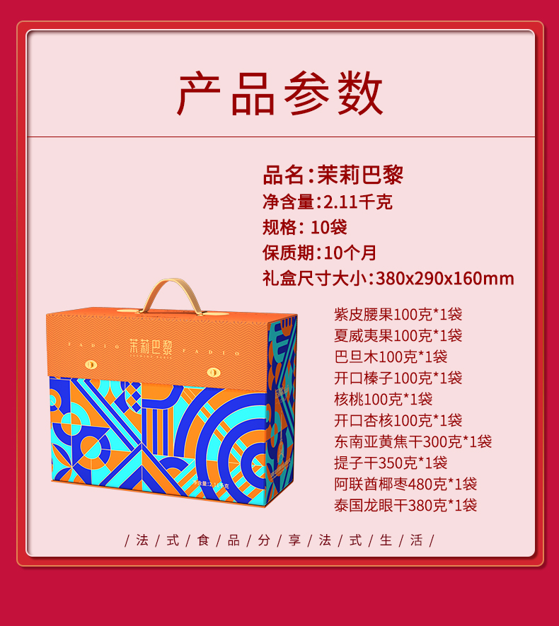商品名称:法蒂欧茉莉巴黎坚果礼盒2110g