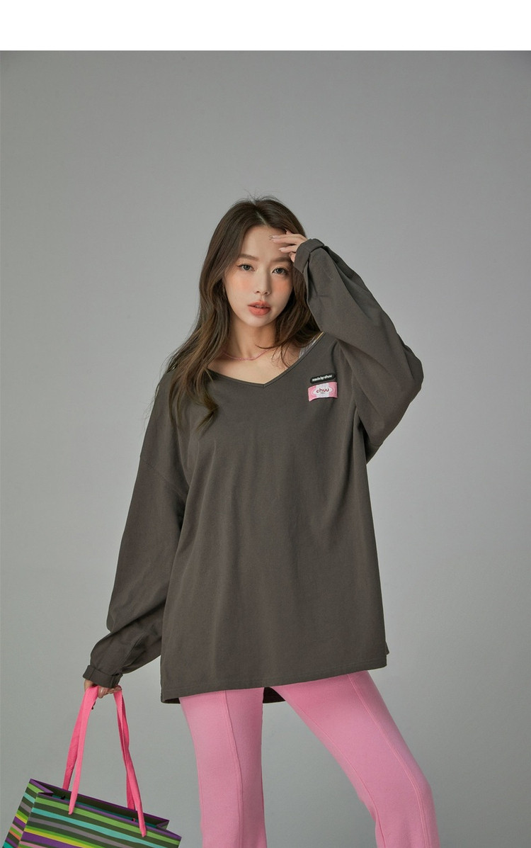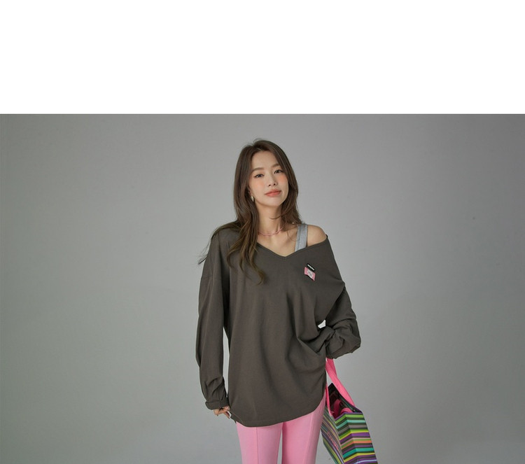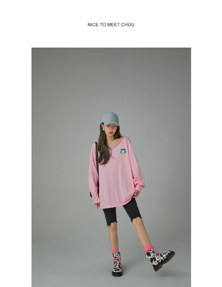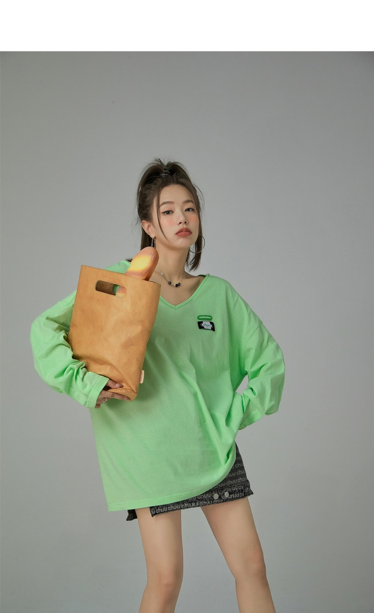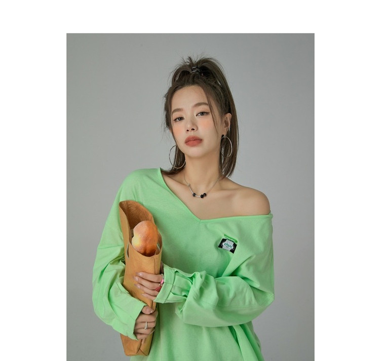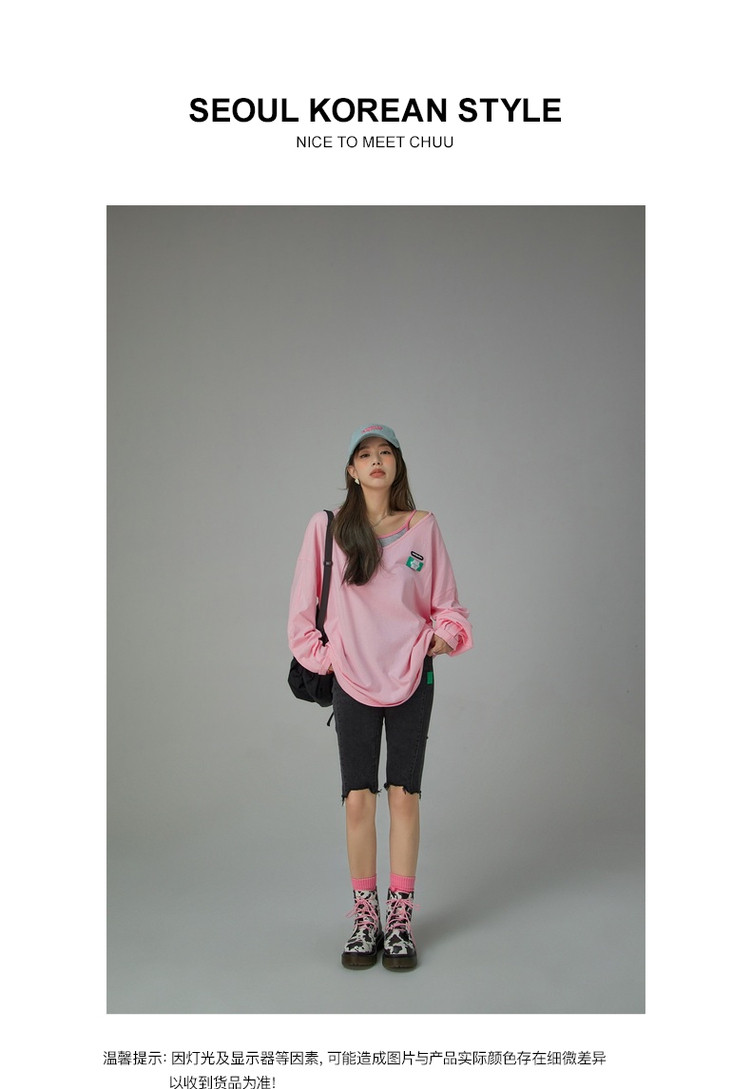 商品名称:设计感T恤女士春秋贴标洋气宽松显瘦休闲上衣 281299
