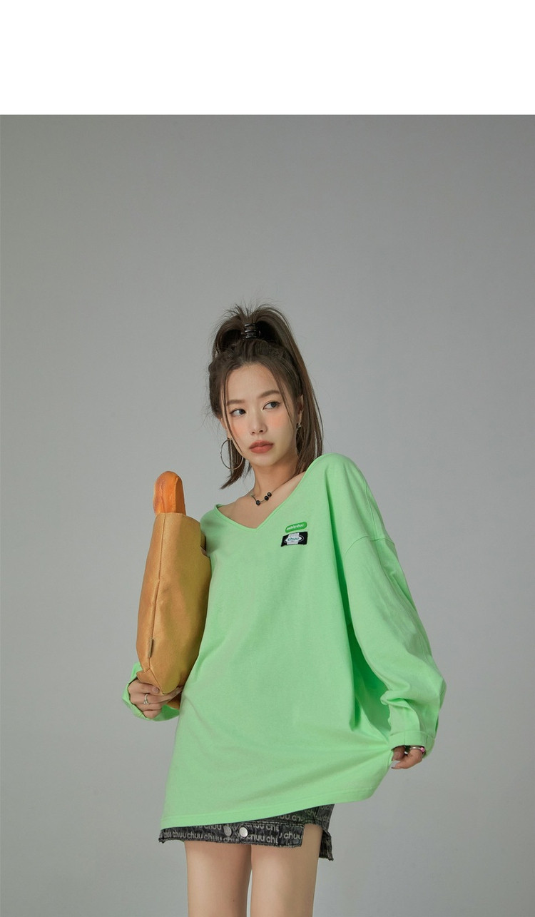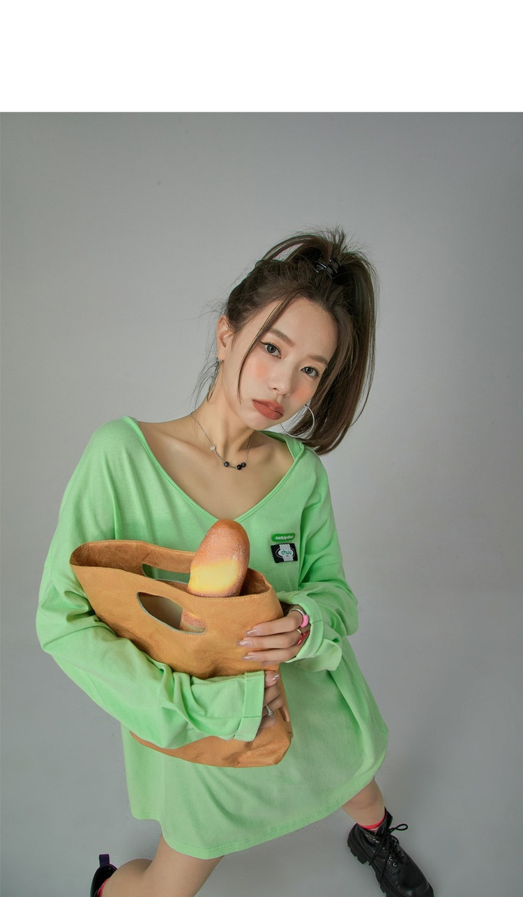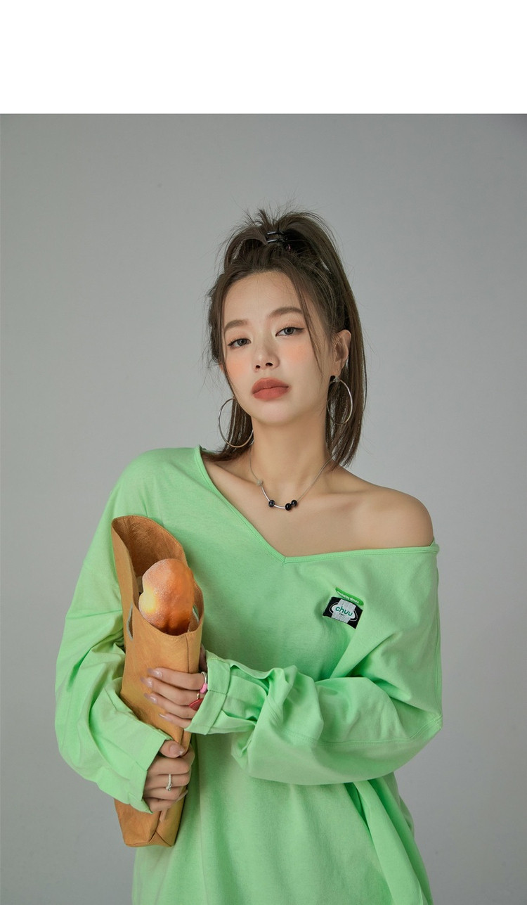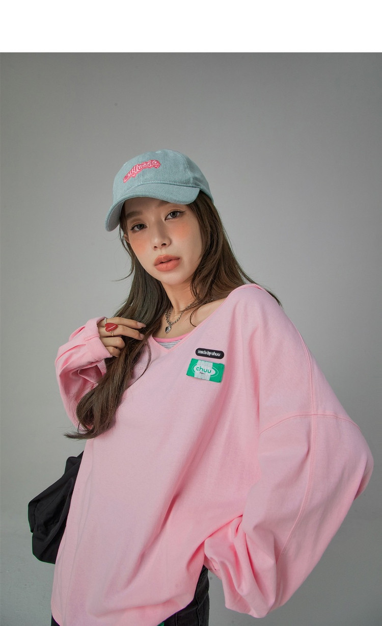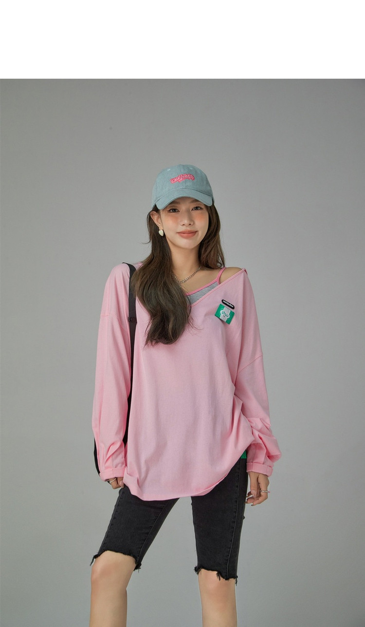 商品名称:设计感T恤女士春秋贴标洋气宽松显瘦休闲上衣 281299
