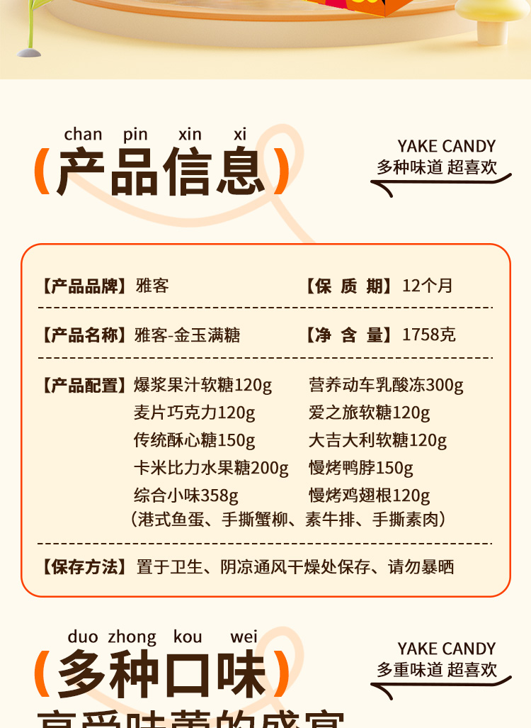 商品名称:【顺丰配送】雅客金玉满糖糖果零食礼盒1758g