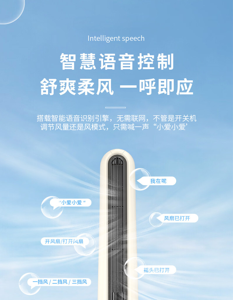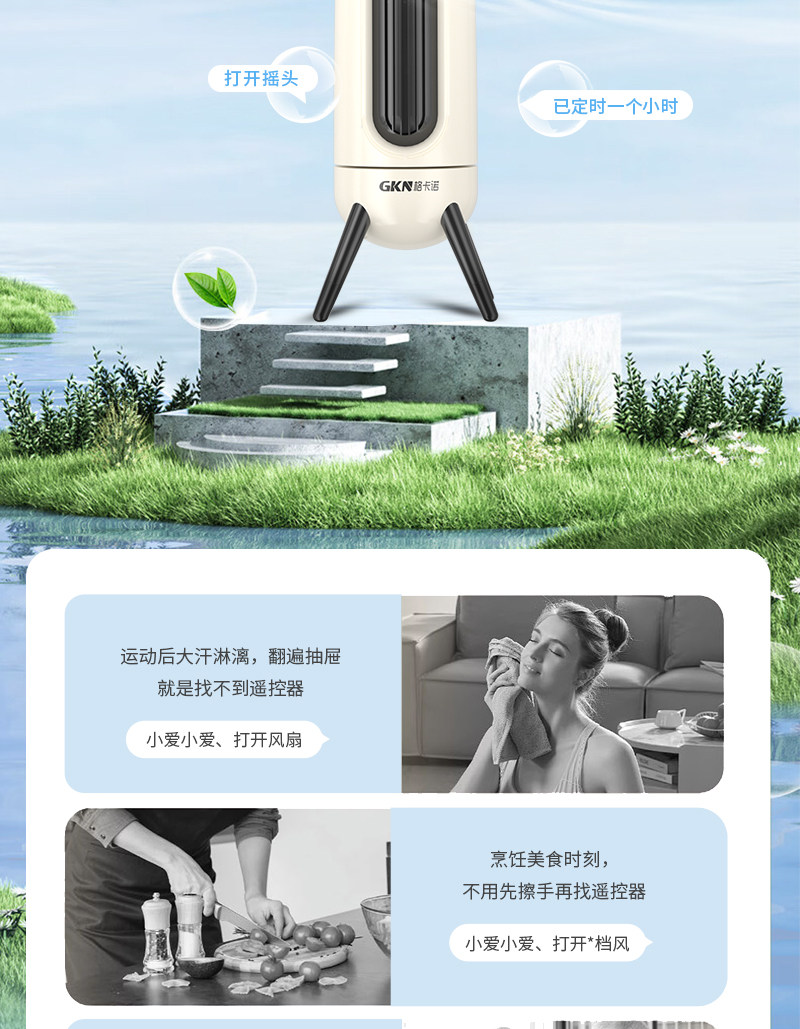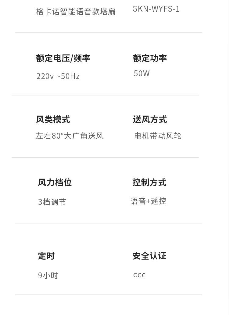 商品名称:GKN/格卡诺带遥控智能语音款塔扇-米白色GKN-WYFS-1