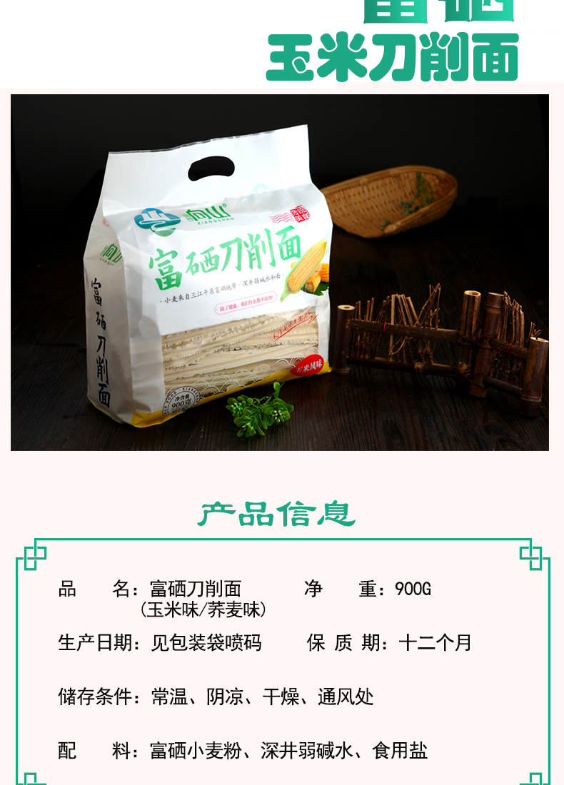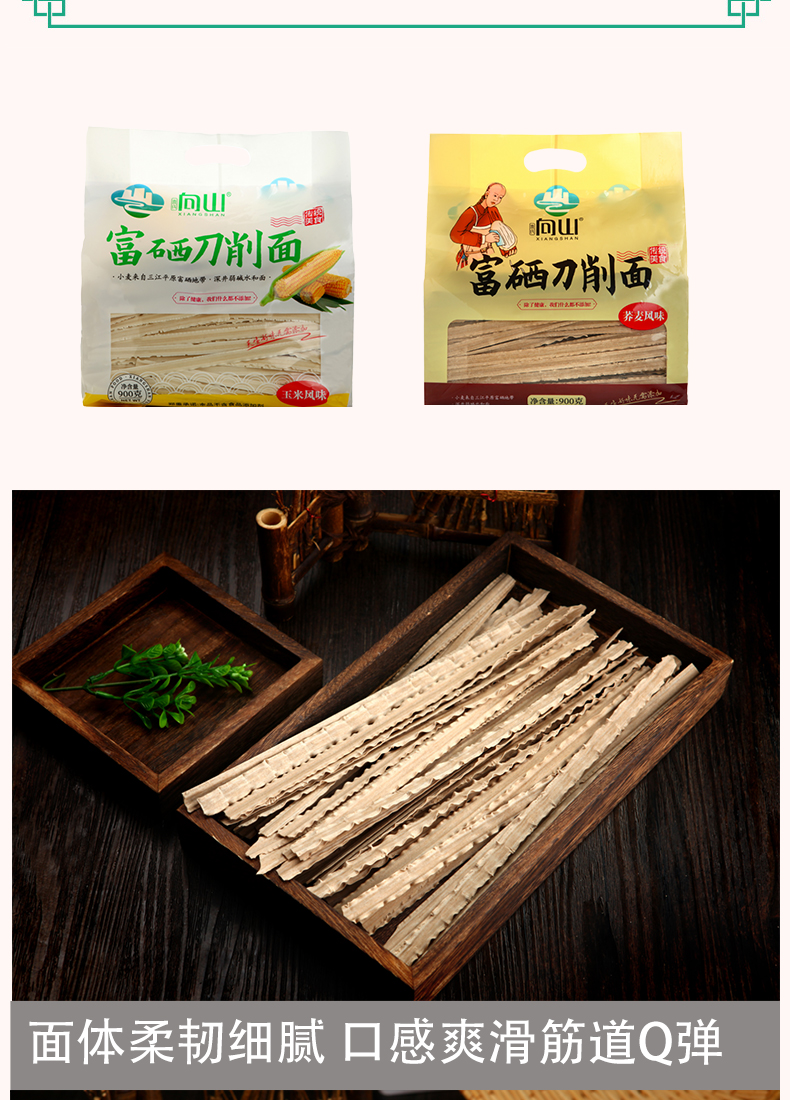 商品名称:袁氏向山富硒刀削面组合(荞麦风味+玉米风味)900g*2袋