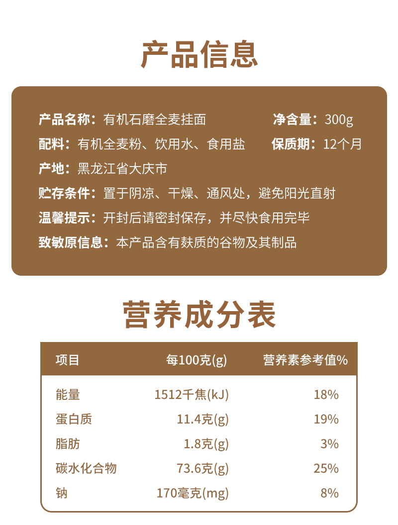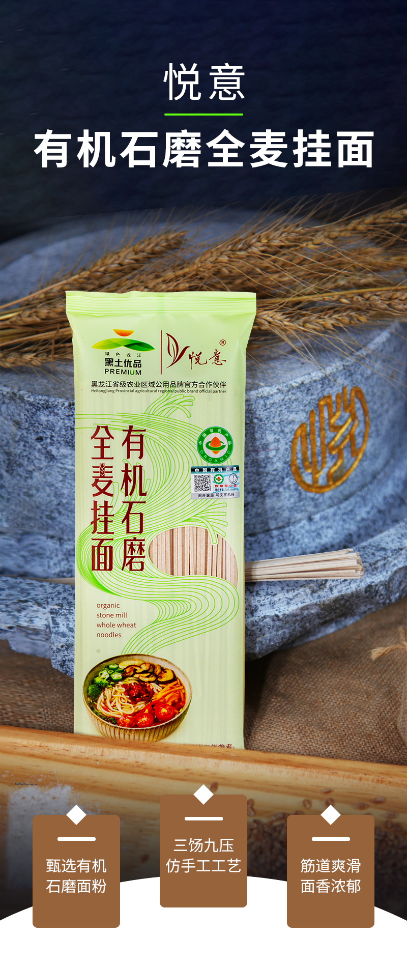 商品名称:悦意有机石磨全麦挂面300g*5袋