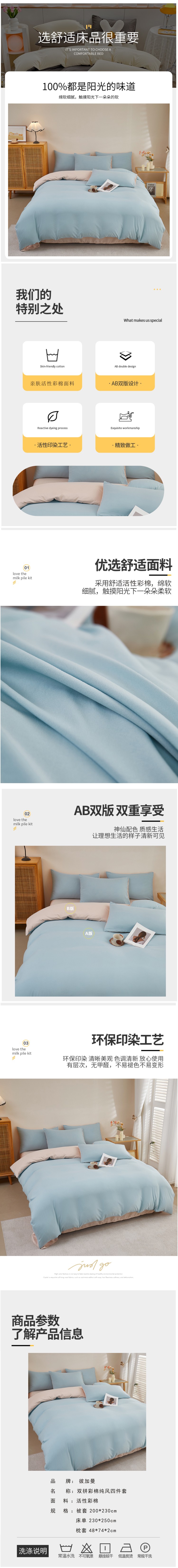商品名称:BeGaMan/彼加曼双拼彩棉纯风床品四件套-浅兰200*230cm BGM-T2461