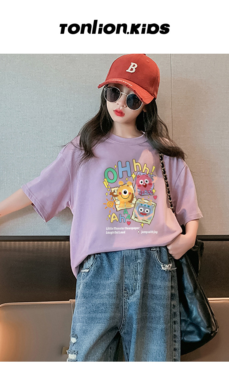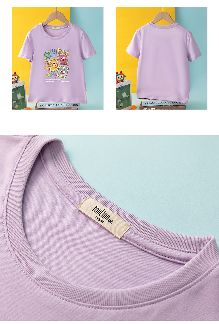 【纯棉吸汗】儿童T恤春秋时尚男童女童短袖衫中大童短袖T恤上衣 618383