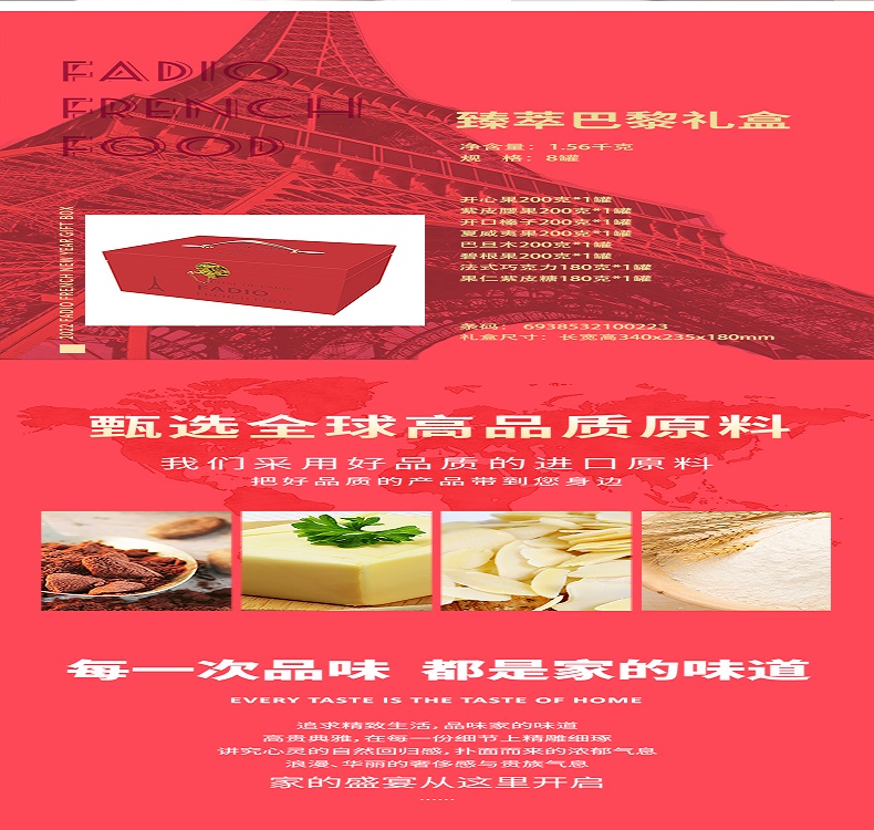商品名称:法蒂欧臻萃巴黎坚果巧克力零食礼盒1560g