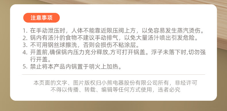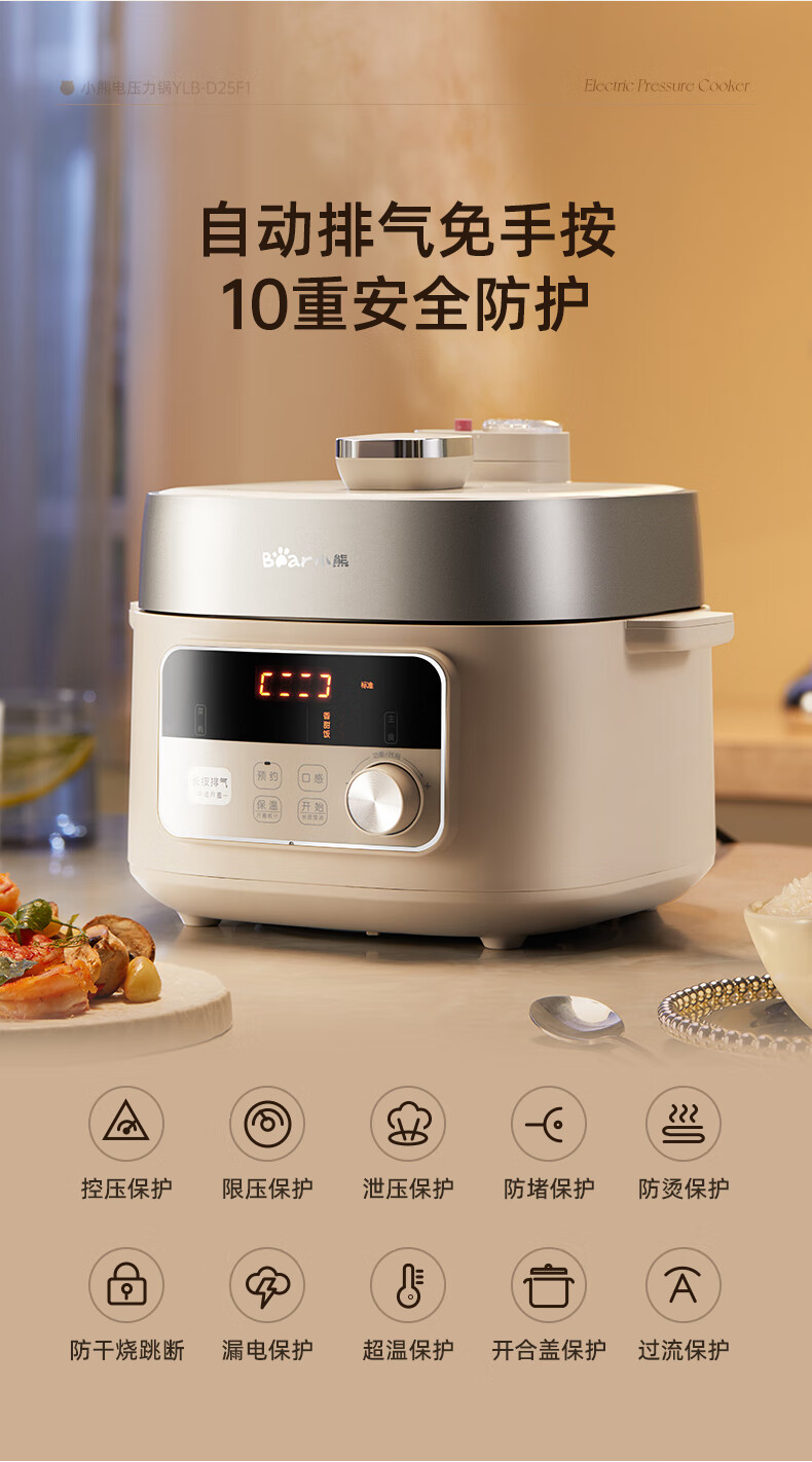 商品名称:Bear/小熊2.5升自动排气电压力锅YLB-D25F1