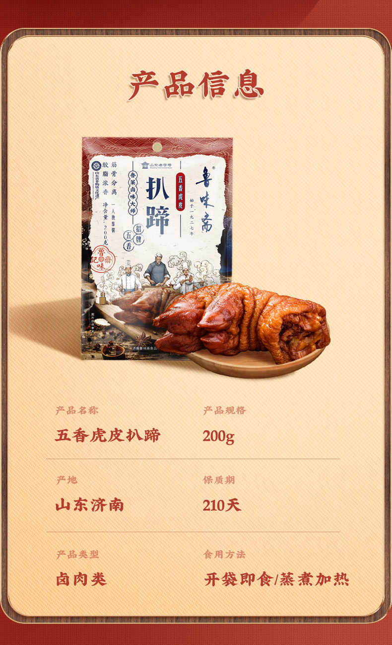 商品名称:鲁味斋五香虎皮扒蹄200g